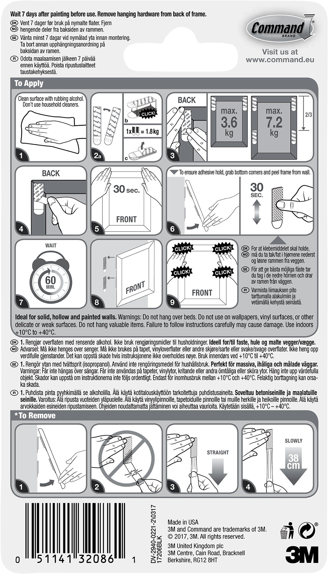 3M Tiras para colgar cuadros Grande - Negro con velcro (20 mm)