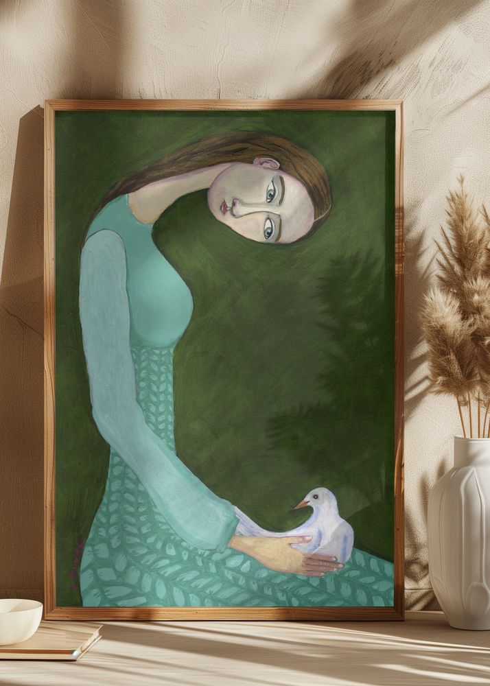 https://www.bgastore.es/Lady-sitting-with-white-dove-bird-woman-Poster-60x90-cm