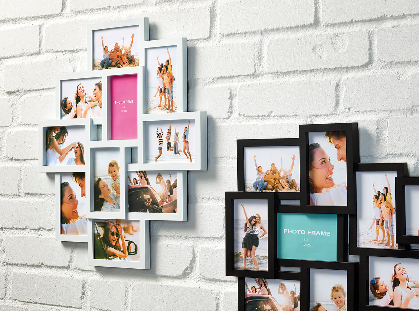 Hacer un collage de fotos en un marco normal es posible, pero puede resultar un poco engorroso. Por eso existen marcos de fotos ya preparados para collage, los llamados marcos collage, para que puedas crear fácilmente un collage con tus bonitos recuerdos fotográficos.