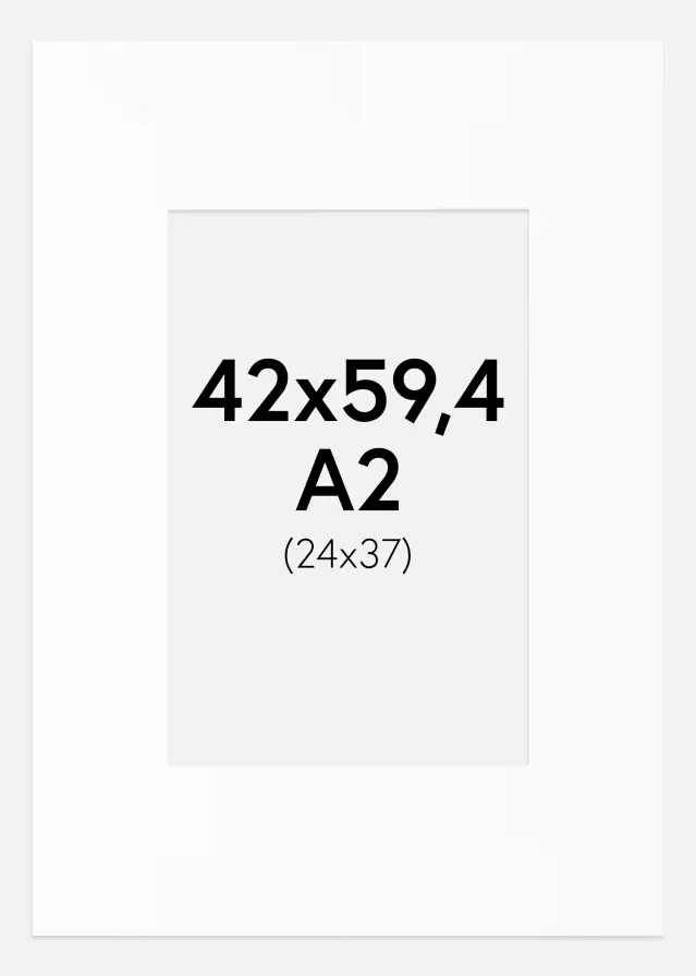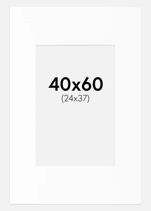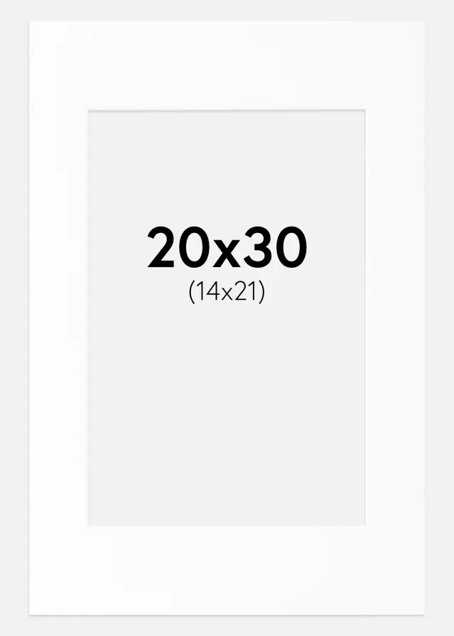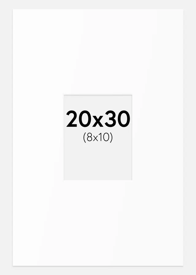 Ejemplo: Tu marco mide 30x40 cm. Las dimensiones exteriores del paspartú deben ser entonces de 30x40 cm.