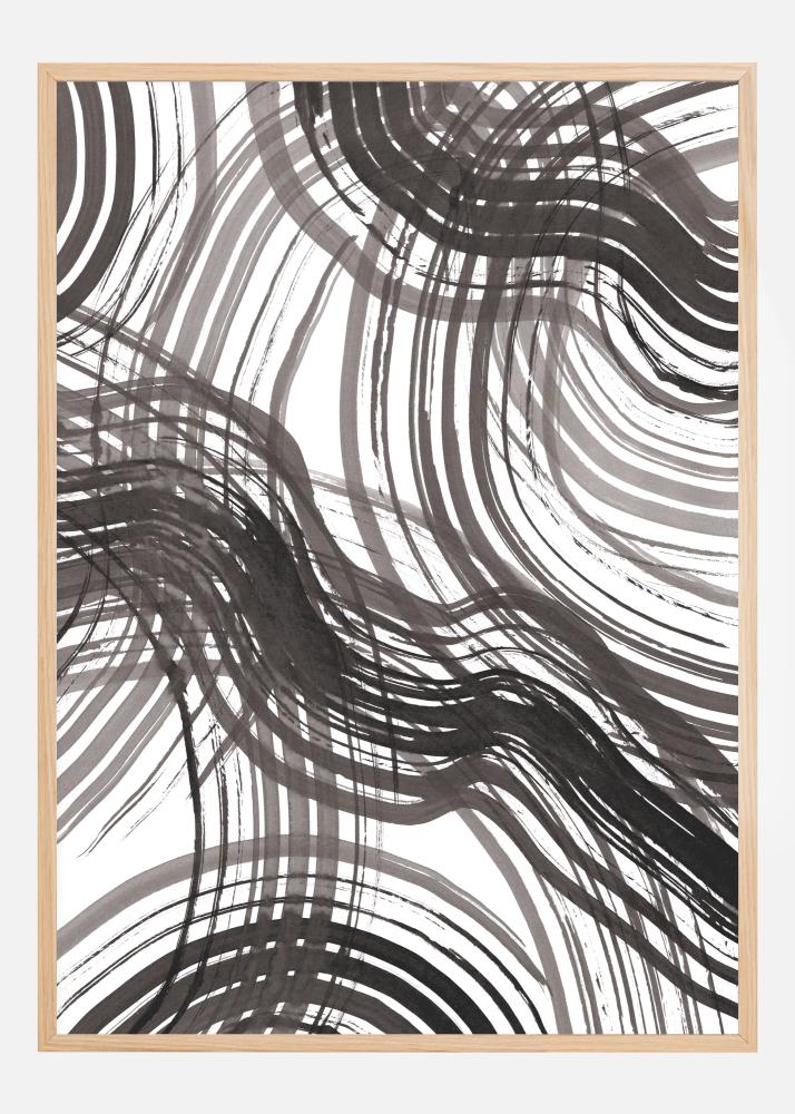 Un póster abstracto giratorio con diferentes tonos de gris de tinta sobre blanco. Las líneas curvas crean un movimiento fluido que atrae el ojo hacia arriba y alrededor de la obra en un bucle infinito. Deja de pensar y disfruta de los remolinos en esta obra sencillo pero elegante en tu hogar.