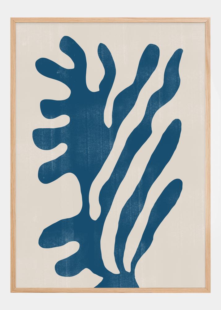 Este póster audaz y vibrante captura la esencia de un follaje abstracto con sus líneas azules onduladas sobre un fondo cremoso. El motivo estilizado recuerda a la vegetación submarina o plumas que bailan en el viento, proporcionando una sensación de libertad y naturaleza. Esta obra de arte combina la belleza orgánica con una estética de diseño gráfico moderno.