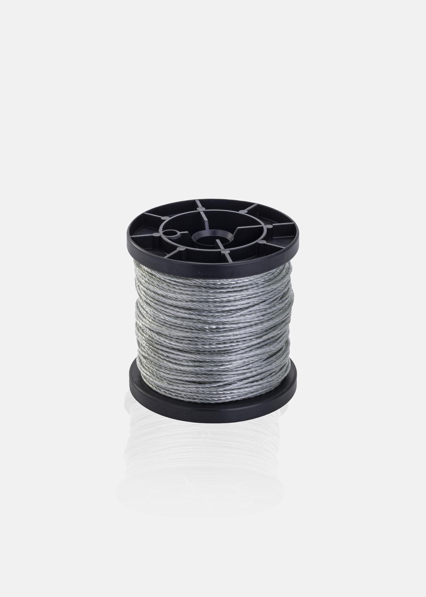 Línea de acero plastificada en un práctico rollo de 50 metros. Perfecto cuando quieres organizar todos tus cuadros. El grosor total es de 2,5 mm de diámetro, donde la parte de acero en sí tiene 1 mm y el revestimiento de PVC tiene 1,5 mm.