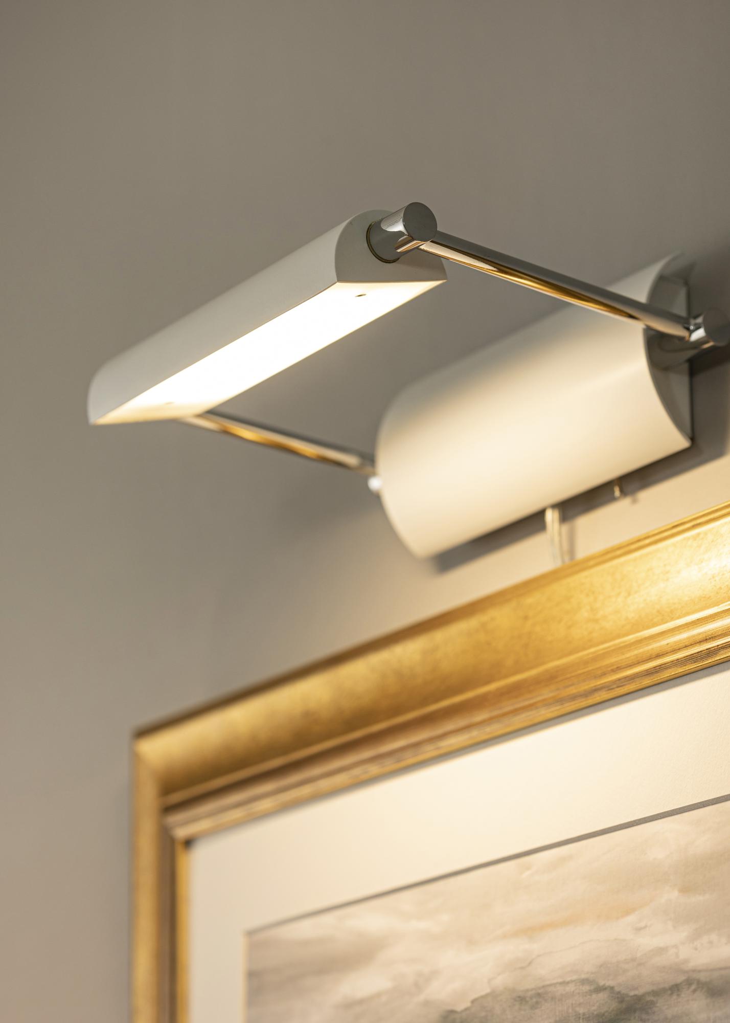 Iluminación de cuadros diseñada en Suecia con iluminación LED para una larga durabilidad. La iluminación tiene una buena luminosidad de 6W que equivale a 540 lúmenes, lo cual le da ese toque especial a los cuadros que te gustan mucho y quieres mostrar. La iluminación es fácil de regular para obtener el ángulo de luz que deseas. Se adapta a todos los cuadros con un ancho de 40-60 cm.