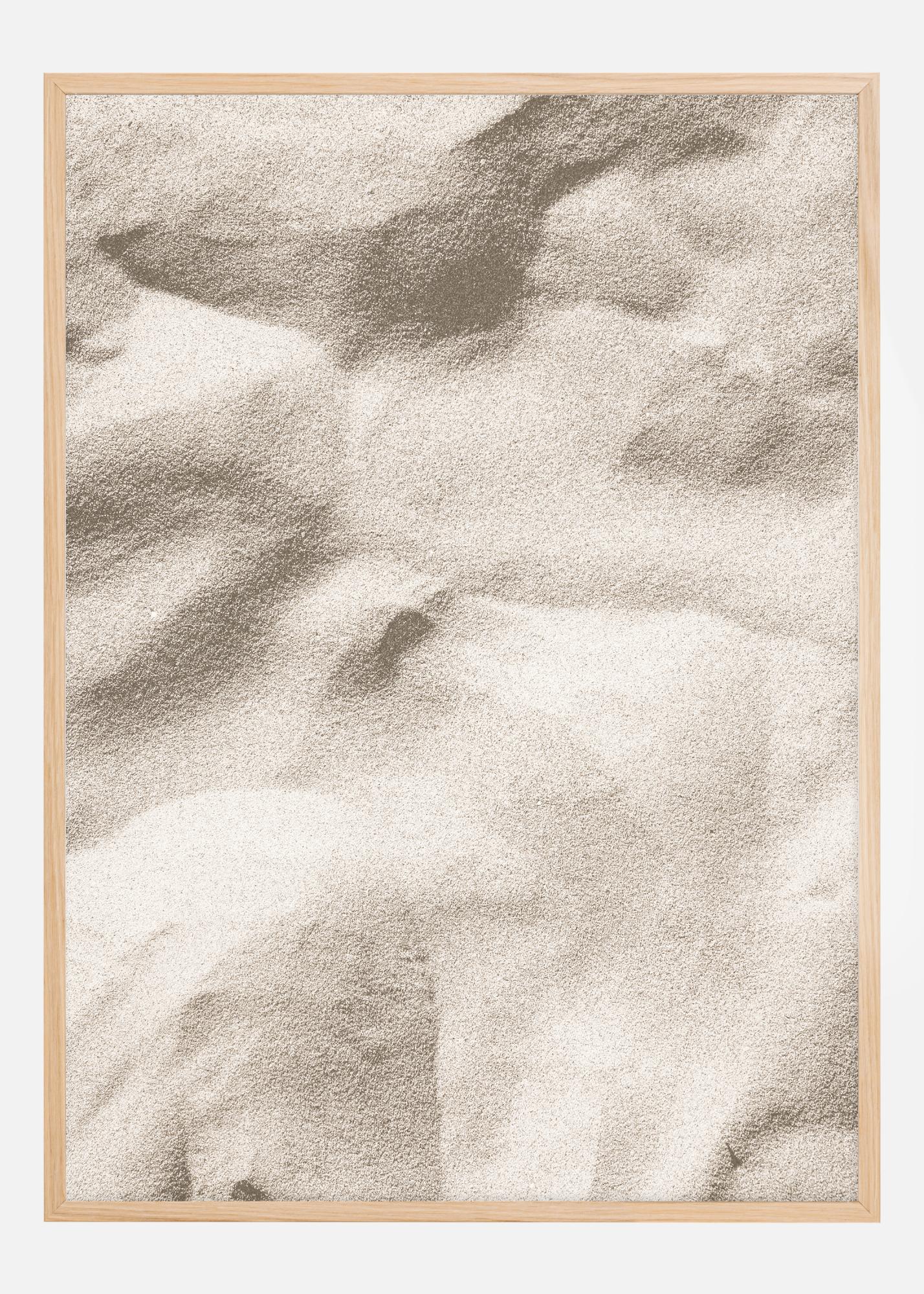 Este póster simplista y meditativo captura la textura natural y los suaves contornos de las dunas de arena. La foto monocromática juega con la luz y la sombra para resaltar las formas sensuales y efímeras creadas por los movimientos del viento sobre la superficie de la arena. Las suaves gradaciones de luz a oscuridad crean un efecto casi hipnótico, invitando a la reflexión y la tranquilidad.