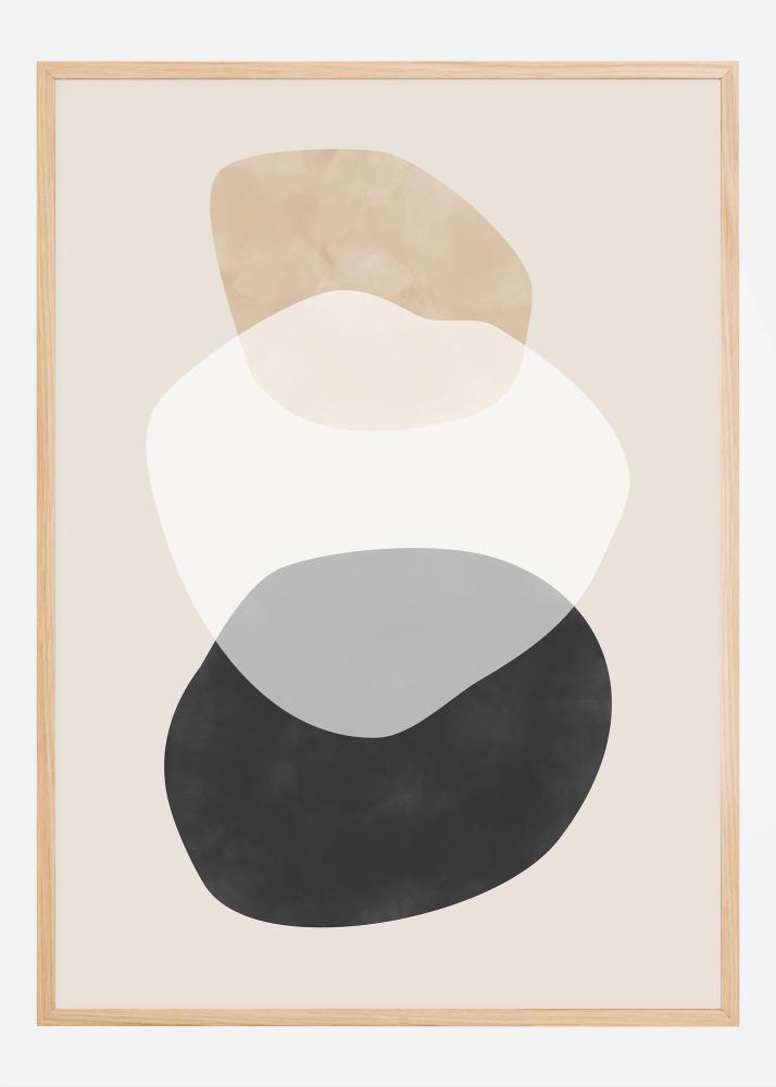 Este cartel artístico emana una estética tranquila y moderna que se adapta perfectamente a un hogar u oficina contemporáneos. Con un diseño minimalista compuesto de formas abstractas superpuestas, esta imagen ofrece un equilibrio armónico entre contornos suaves y contrastes de color sutiles. La paleta de colores incluye tonos de beige, crema, gris y negro intenso, creando una expresión discreta pero audaz en la pared. La obra de arte simple pero efectiva es una representación sutil del diseño escandinavo, ideal para crear una atmósfera relajante en cualquier habitación.
