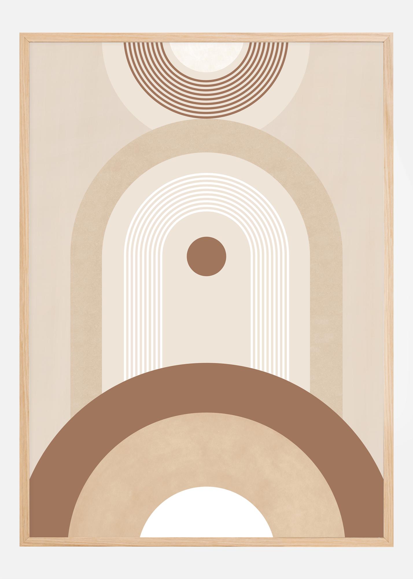 Explora la belleza de la geometría y el minimalismo con este distintivo póster, una parte de nuestra curada colección de arte. Esta impresión, inspirada en la estética moderna de mediados de siglo, combina formas circulares y líneas para crear una sensación de equilibrio y armonía. Los suaves tonos beige y marrones de este póster transmiten una sensación de calma y son perfectos para crear una atmósfera relajada y elegante en cualquier habitación.