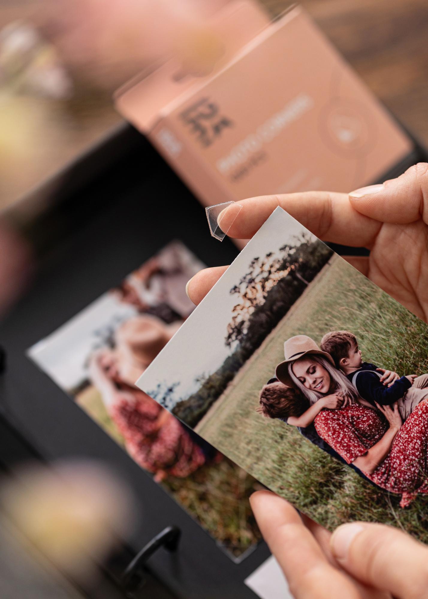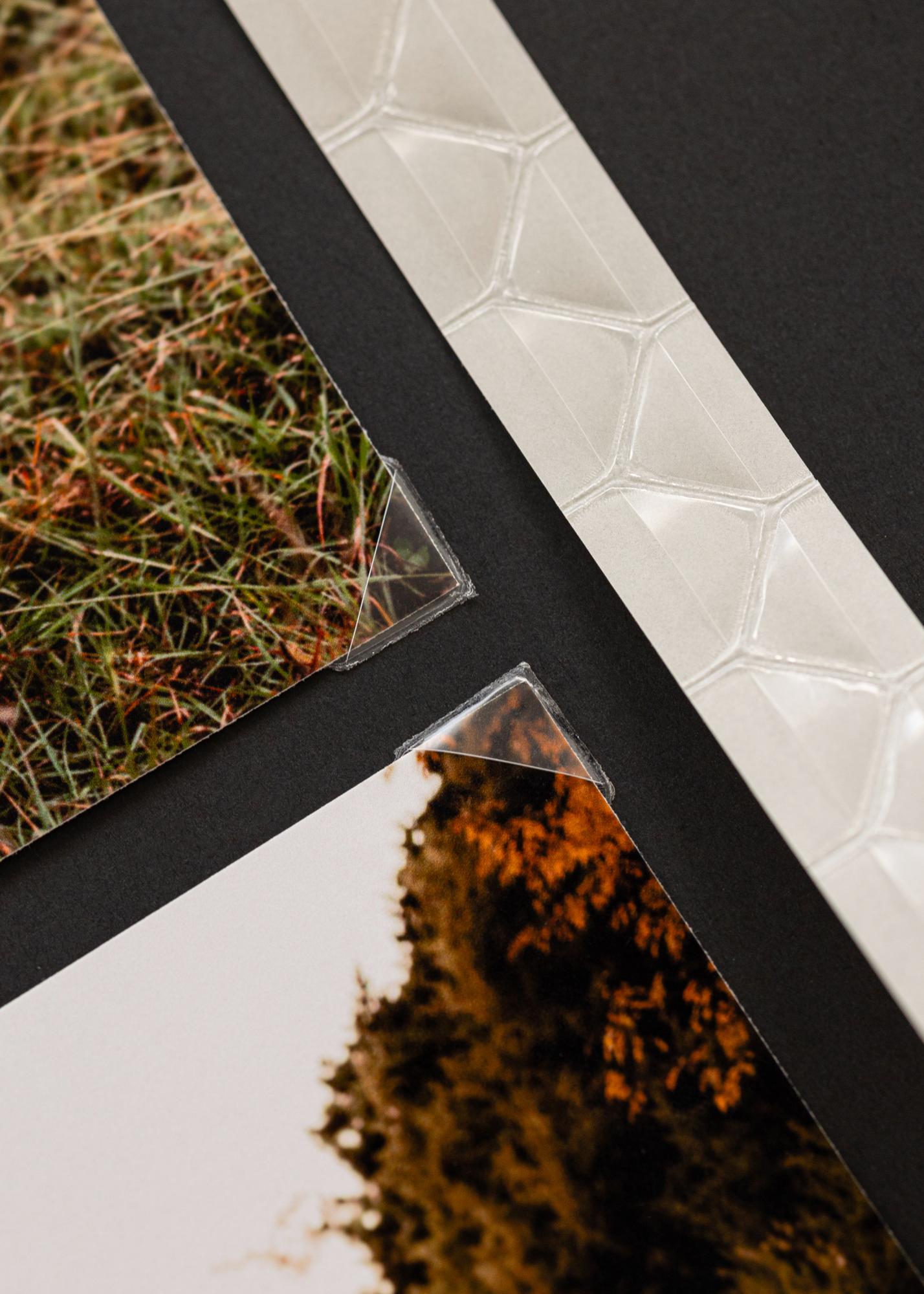 Las esquinas para fotos son perfectas cuando, por ejemplo, quieres montar imágenes en un álbum de fotos y no quieres usar pegamento. Al colocarlas en las esquinas de la imagen, también proteges estas de daños con el tiempo. El resultado es un montaje elegante, práctico y confiable de tus imágenes.