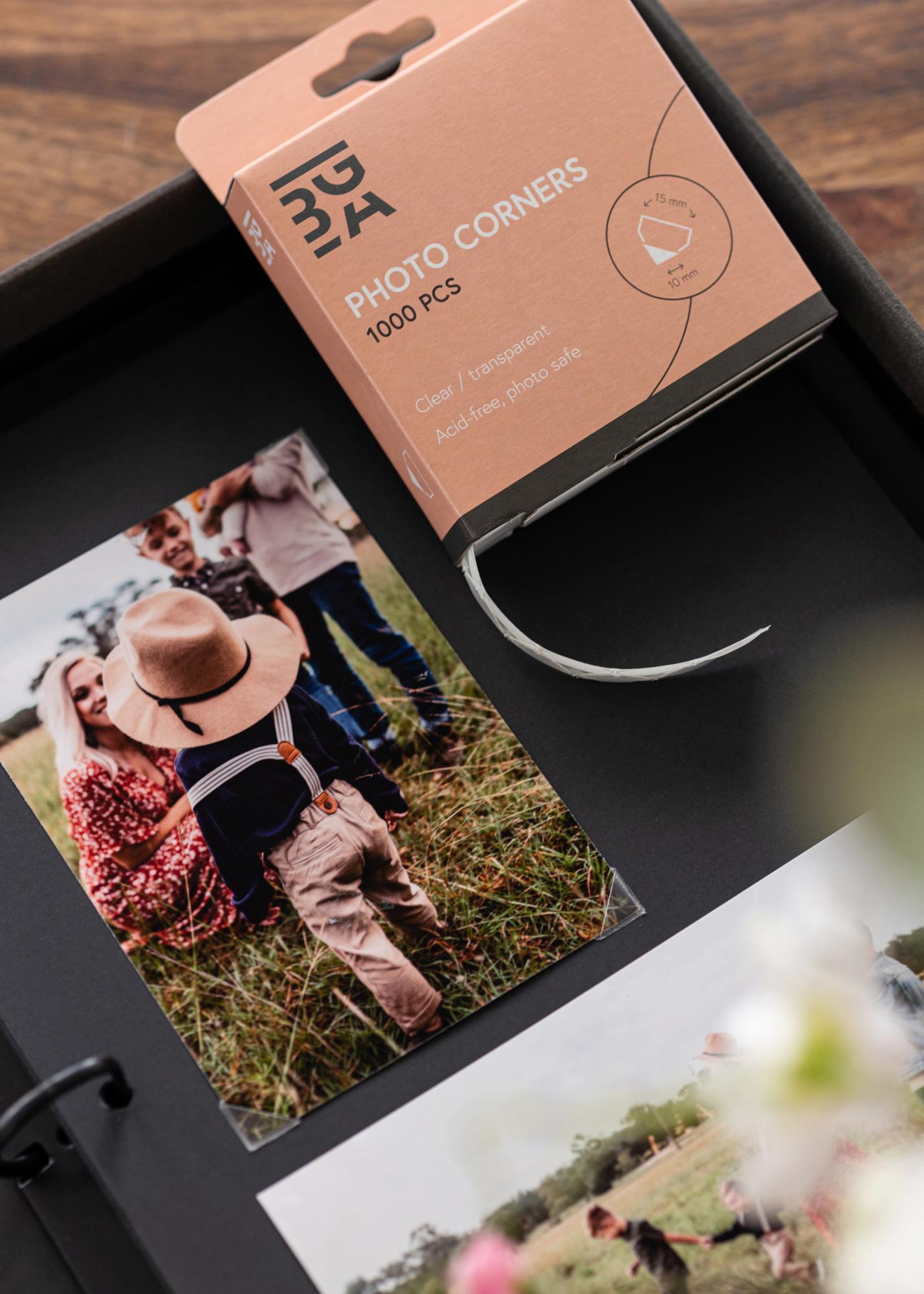 ¡Con las esquinas adhesivas para fotos, el montaje de tus imágenes es rápido y fácil! Estas esquinas transparentes también son libres de ácido, lo que significa que son suaves con tus fotos e imágenes. El paquete incluye 1000 esquinas para fotos en medidas de 10x15 mm.