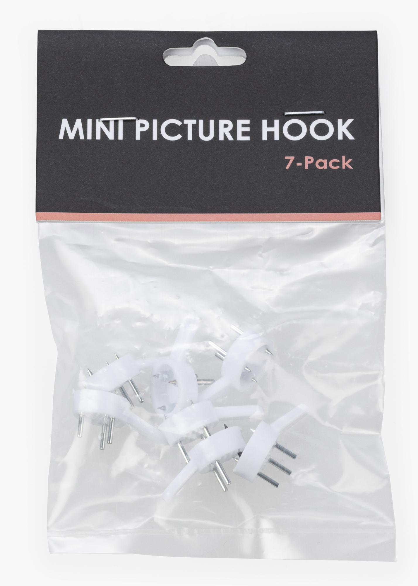 Ganchos para cuadros prácticos para paredes de hormigón que te evitan tener que taladrar y lidiar con tacos. Este tamaño pequeño es perfecto para pósters o decoraciones de pared más ligeras. Cuelga el gancho hacia arriba. Viene en un paquete de 7 unidades.