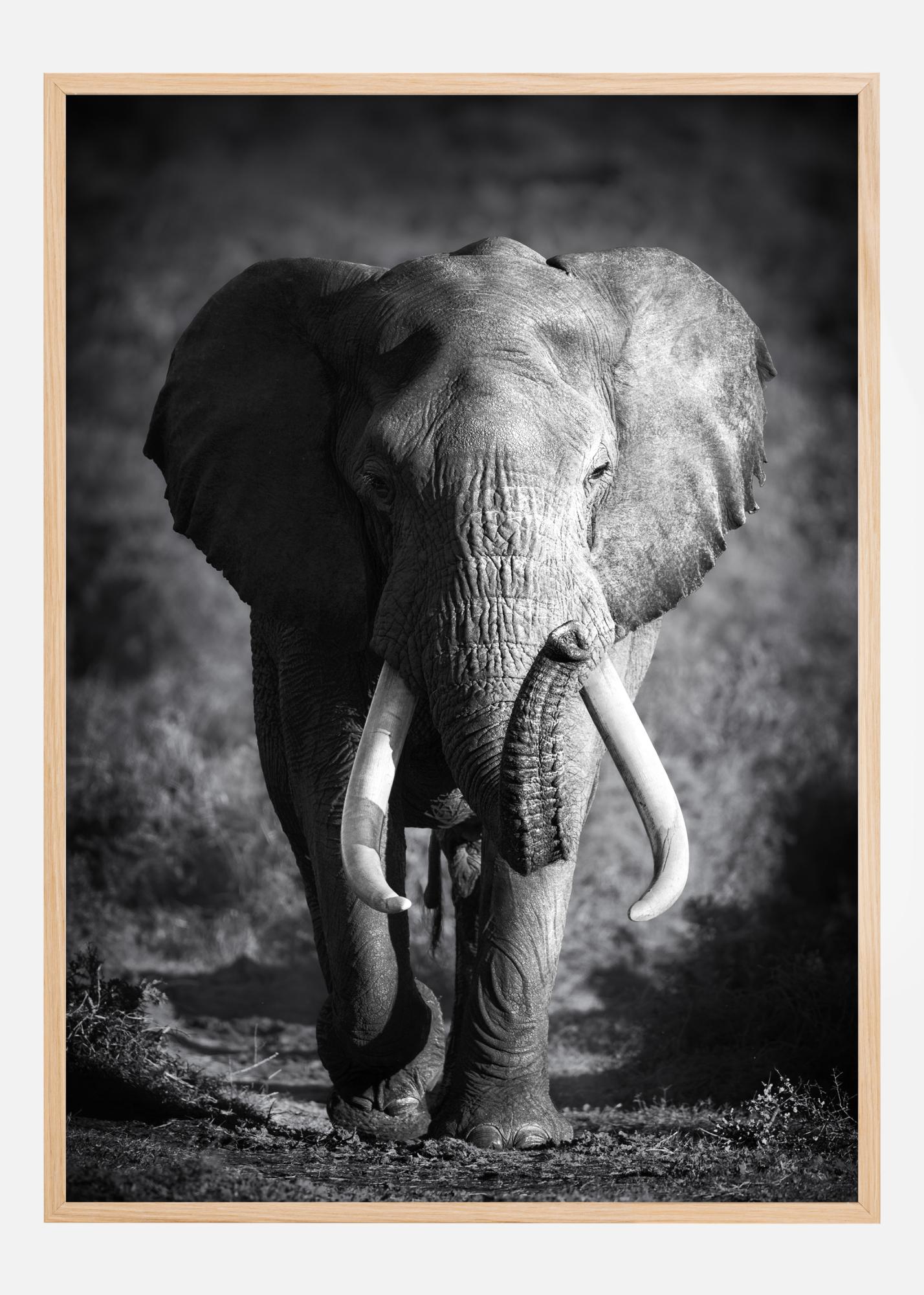 Esta impresión en blanco y negro no solo es una representación del animal terrestre más grande del mundo, sino también un homenaje a la grandeza del mundo natural. El contraste entre las dramáticas texturas del elefante y el suave fondo hace que este póster se convierta fácilmente en un punto focal en cualquier habitación, mientras que es un sutil recordatorio de la fascinante vida salvaje de nuestro planeta.