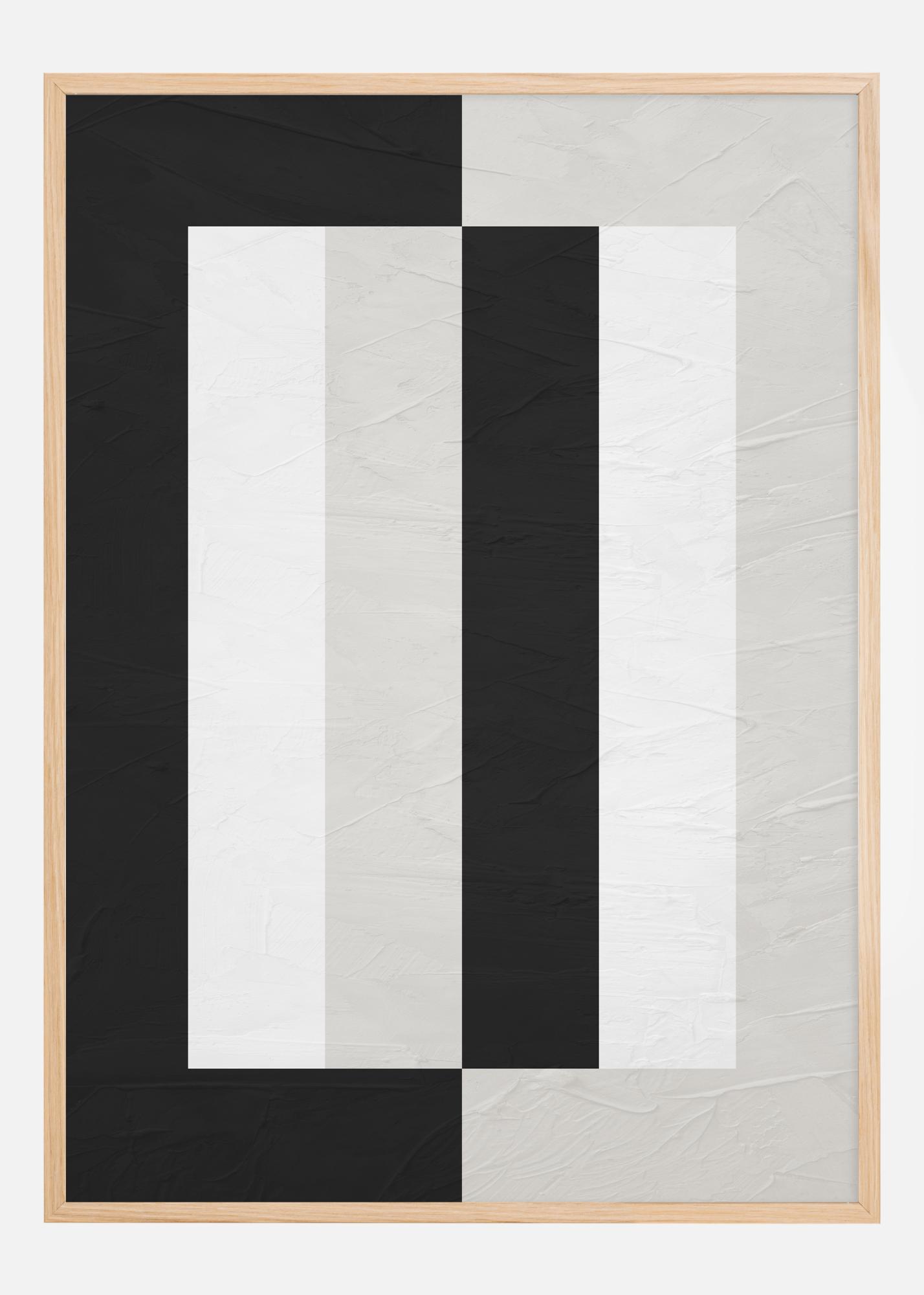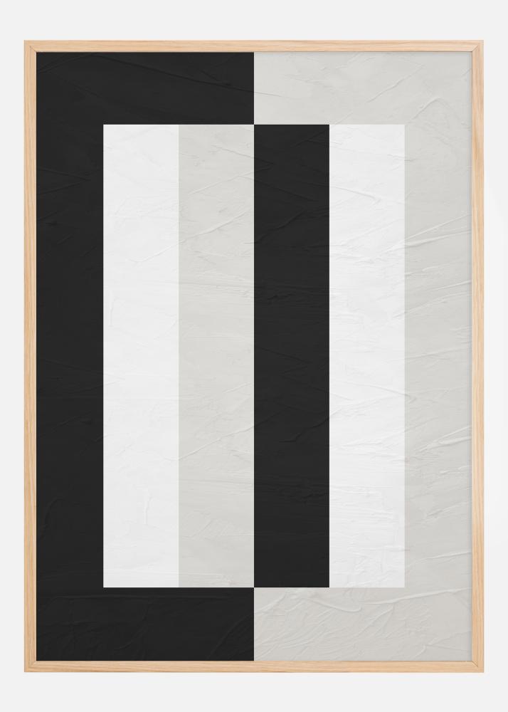 Este póster sofisticado presenta una composición audaz y gráfica que captura de inmediato la atención del espectador. La combinación contrastante de negro y blanco forma una serie de líneas y bloques verticales, creando una ilusión óptica de profundidad y movimiento. Este cartel es ideal para el decorador moderno que busca una obra de arte que transmita una sensación de elegancia y diseño contemporáneo. La paleta de colores austera facilita la integración de esta imagen en diferentes habitaciones y entornos.
