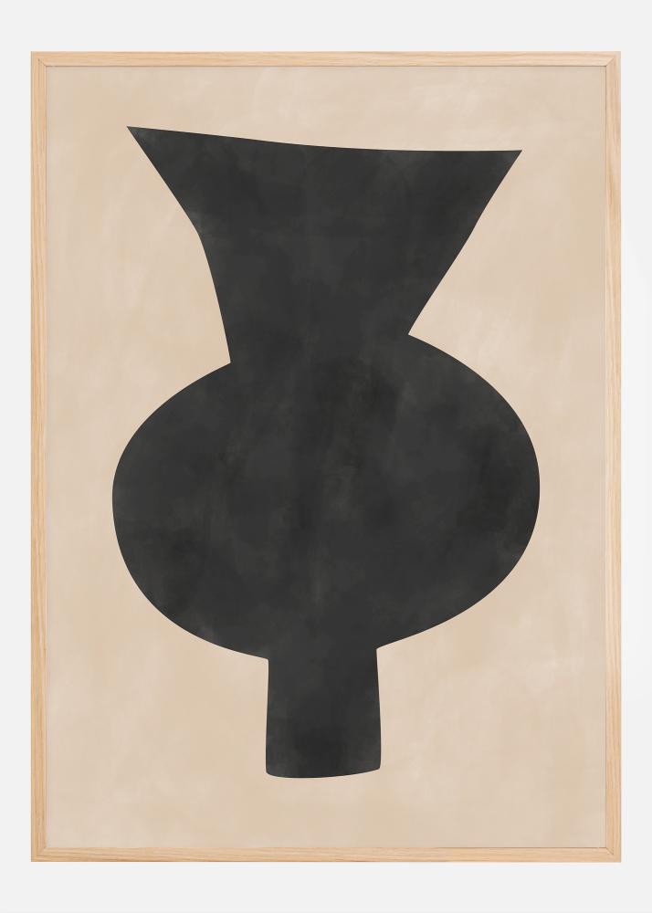 Este póster captura la esencia del arte abstracto contemporáneo con su atrevida y sencilla forma negra que recuerda a un jarrón o una escultura, ofreciendo un poderoso efecto visual contra un fondo neutro. El contraste entre el negro profundo y el beige calmante hace que este sea un cartel perfecto para aquellos que desean hacer una declaración decorativa elegante pero contundente. La silueta dinámica y algo orgánica de la forma crea una sensación de movimiento y quietud, invitando a la reflexión y la interpretación.