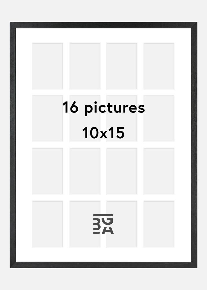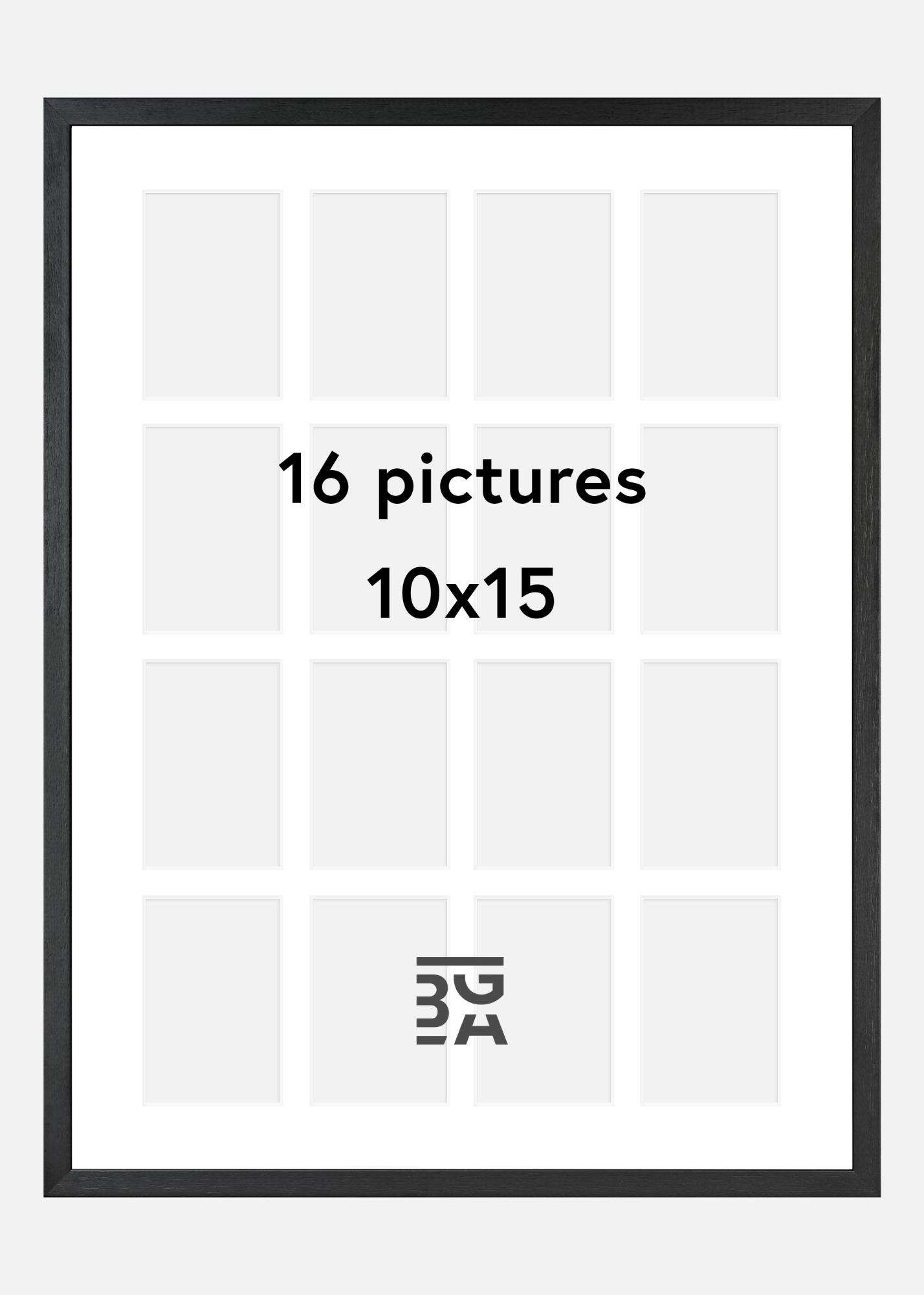 Black Wood con un paspartú para 16 fotos es perfecto para fotos de los niños, mascotas o tal vez imágenes de las últimas vacaciones. El marco negro y elegante en combinación con el paspartú blanco resalta los colores de las imágenes y también queda bien con fotos en blanco y negro.