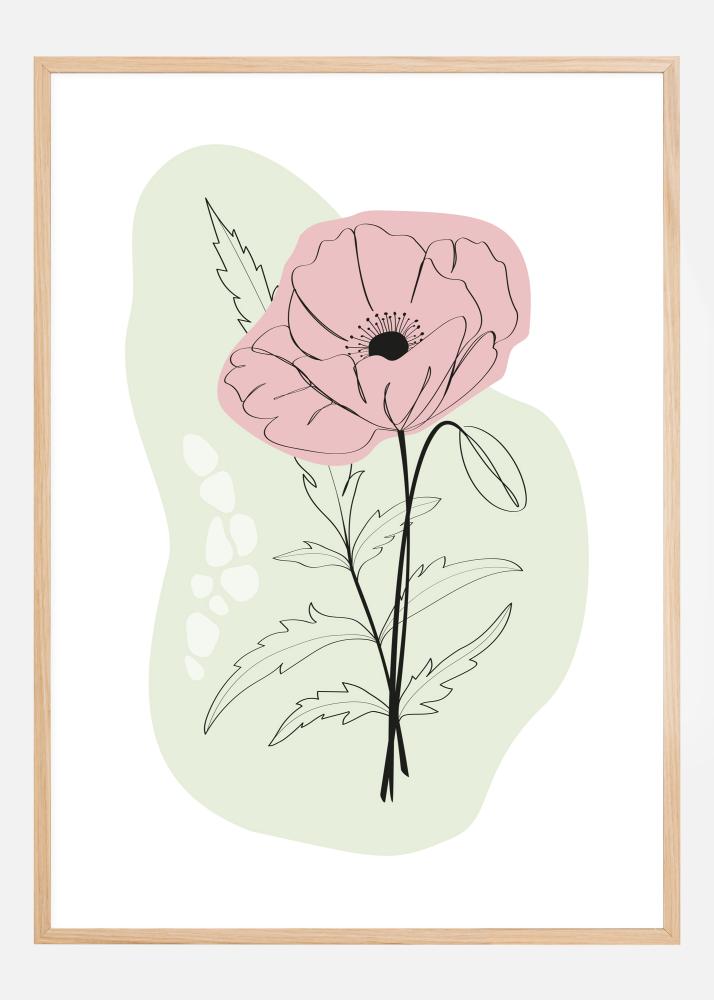 Un póster abstracto con una impresión de una amapola. Elegantes líneas negras forman esta imagen sencillo pero efectiva. Los pétalos y las hojas están dibujados cuidadosamente y las secciones de color rojo y verde resaltan la flor sobre un fondo blanco. Cuelga esta elegante impresión en la cocina como una expresión un poco loca.