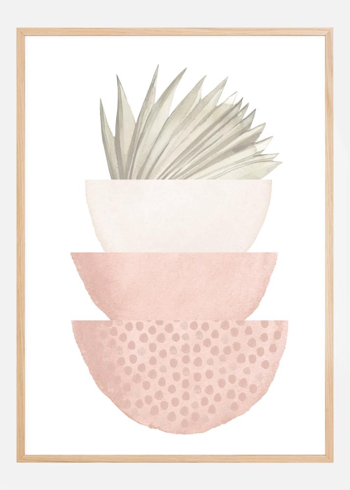 Este elegante póster es un homenaje al diseño minimalista y la estética simplificada. Una planta gris-verde emerge de un cuenco en forma de semicírculo con tonos rosados y una delicada textura de puntos, todo ello presentado sobre un fondo neutro. El contraste entre la austera planta y el suave cuenco crea un equilibrio agradable. Esta impresión artística es perfecta para aportar una sensación relajada y orgánica a la habitación y se adapta bien a un estilo de interior moderno, escandinavo o bohemio.