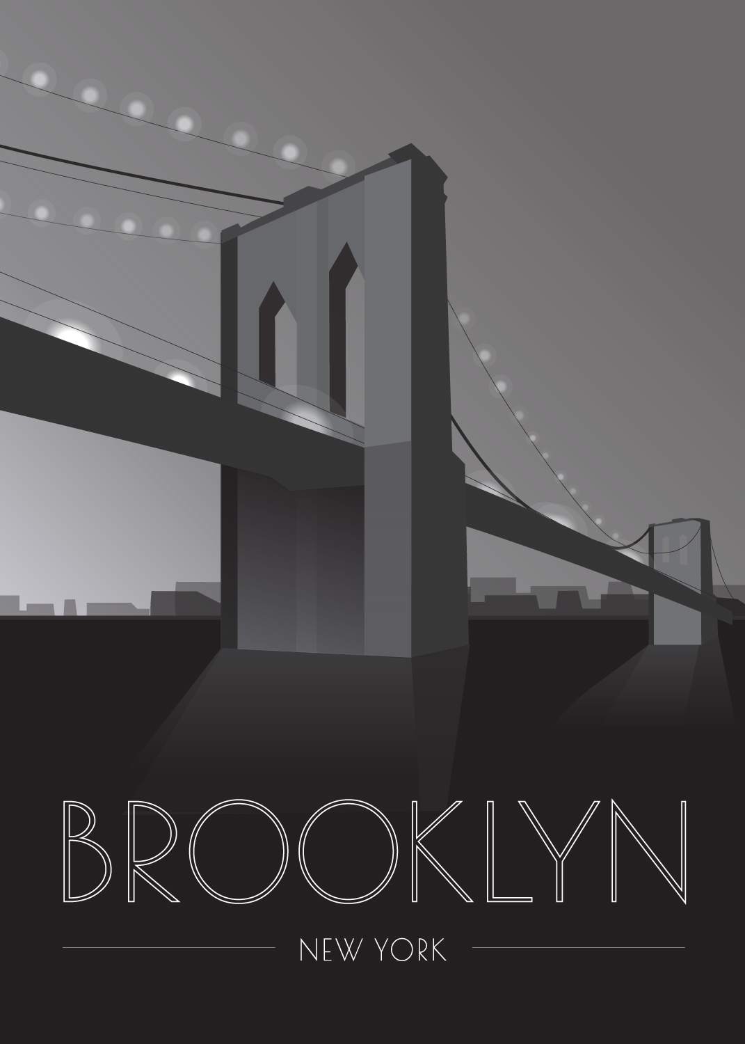 Recorre todo el camino hasta Brooklyn cada vez que veas esta hermosa obra de arte. El Puente de Brooklyn es un póster de alta calidad que aporta una agradable sensación retro a tu hogar. El diseño minimalista está en blanco, gris y negro con el texto "Brooklyn New York" en blanco. La escala de grises lo hace perfecto para combinar con tus colores favoritos. Cuélgalo tal cual o complementa con un marco y un paspartú elegante. Disponible en 6 formatos y rangos de precios diferentes.