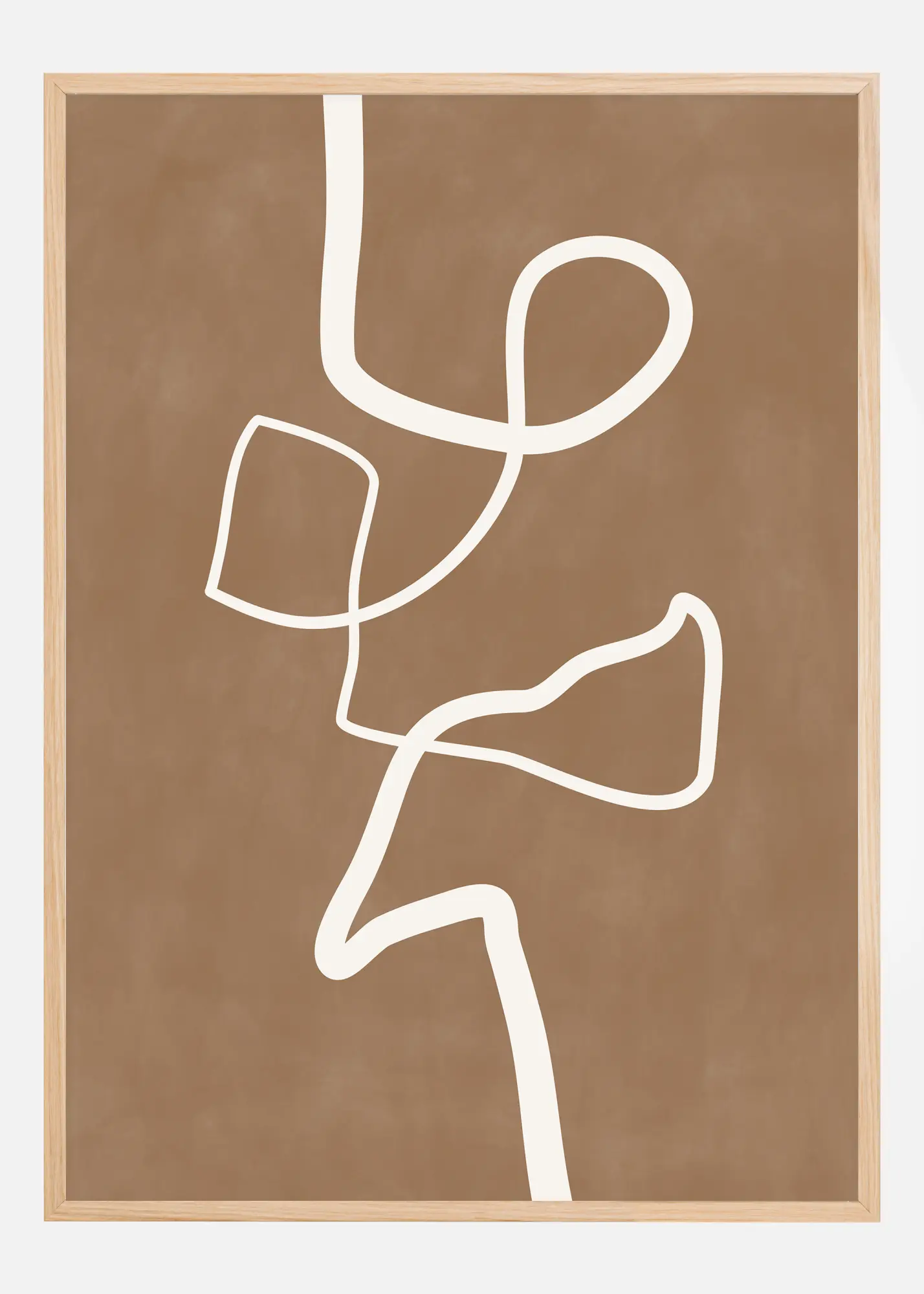 Con un toque sutil y contemporáneo, este póster transmite una elegancia sencilla a través de su única línea continua blanca que dibuja una forma abstracta sobre un fondo marrón cálido. Esta obra de arte personifica el alma del minimalismo y ofrece un estilo limpio y sin complicaciones que aun así logra captar la atención y la imaginación. La línea fluye libre y sin restricciones, creando formas abiertas y cerradas, y ofrece una poesía visual que es tanto relajante como intelectualmente estimulante. Perfecta para el amante del diseño minimalista, esta impresión es un complemento elegante para cualquier decoración moderna.
