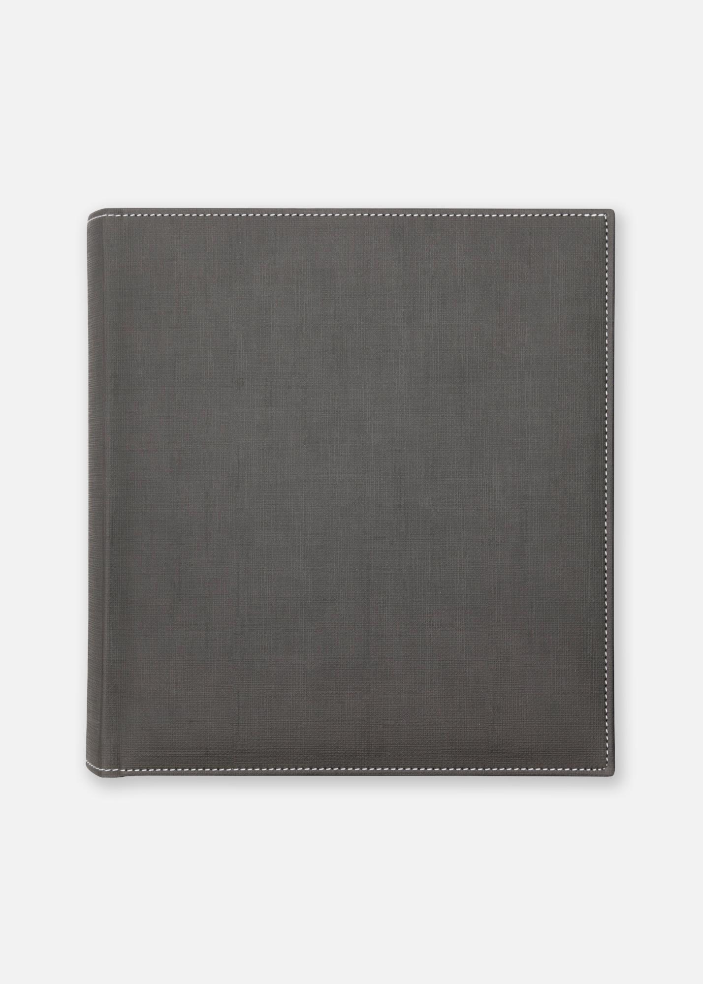 El álbum Burde gris es un álbum encuadernado con tapas de cuero sintético gris que le da una sensación de alta calidad. El álbum cuenta con fundas para fotos para 100 fotos verticales de tamaño 10x15 cm, y en la parte trasera también hay espacio para un CD. Las páginas del álbum son blancas y tienen espacios de escritura junto a cada foto.