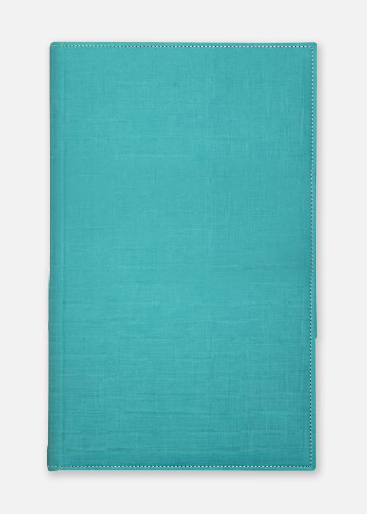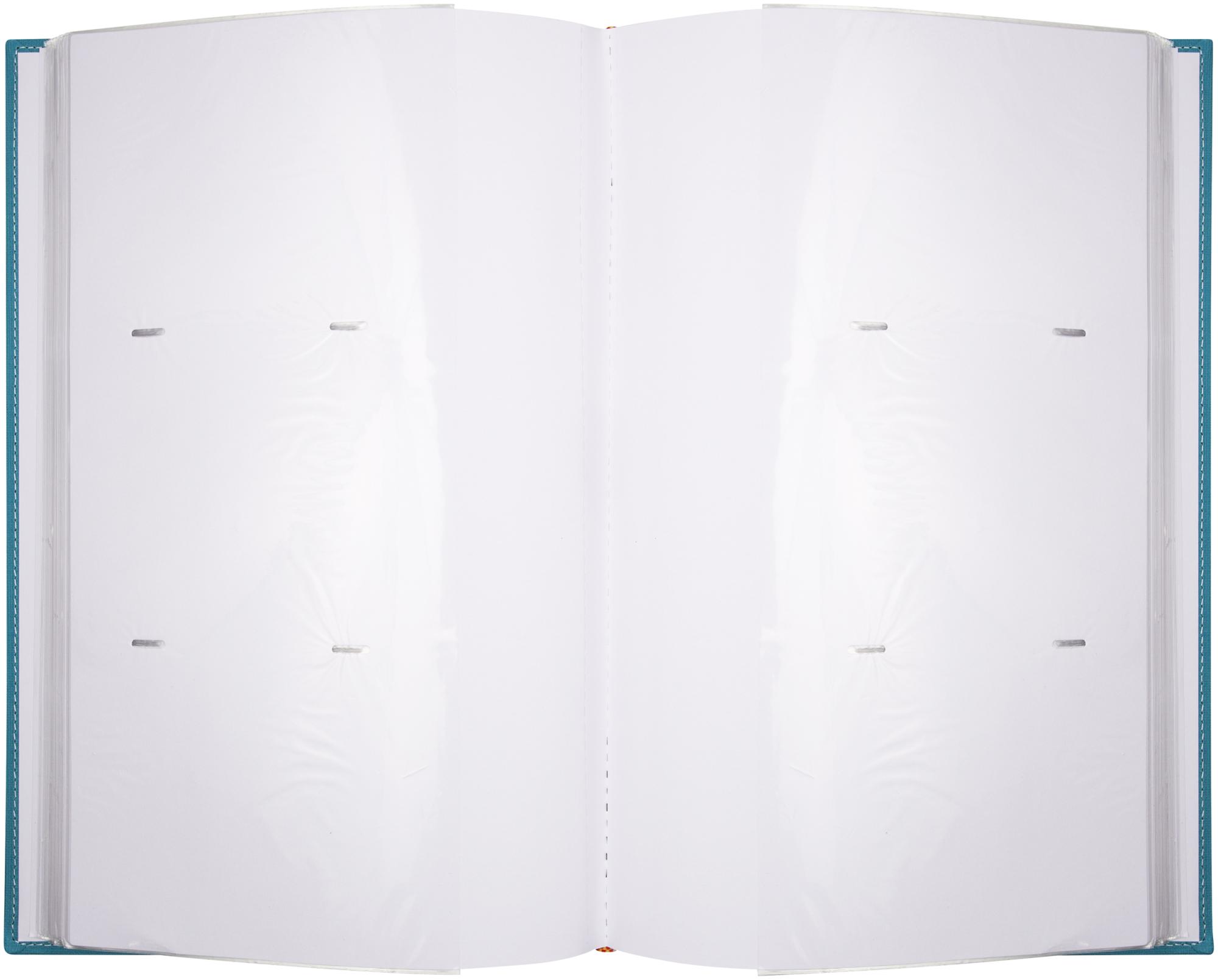 El álbum Burde turquesa es un elegante álbum encuadernado con cubiertas de cuero sintético turquesa que le dan una sensación de alta calidad. El álbum cuenta con fundas para fotos para 300 imágenes horizontales de tamaño 10x15 cm, y en la parte trasera también hay espacio para un CD. Las páginas del álbum son blancas y tienen espacios de escritura junto a cada imagen.