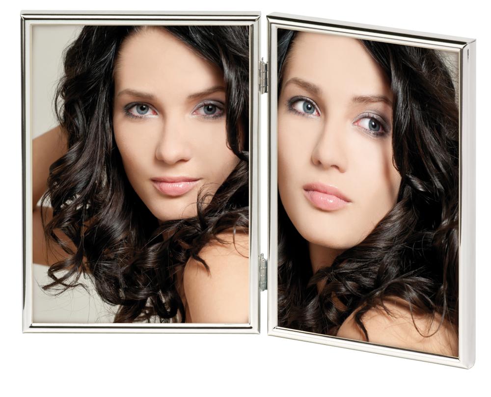 Chloe marco plegable es un elegante marco de retrato con un perfil redondeado en color plata nuevo que se adapta a 2 fotos en tamaño 13x18 cm. Chloe es un marco de alta calidad de Walther con la parte trasera forrada en terciopelo negro.