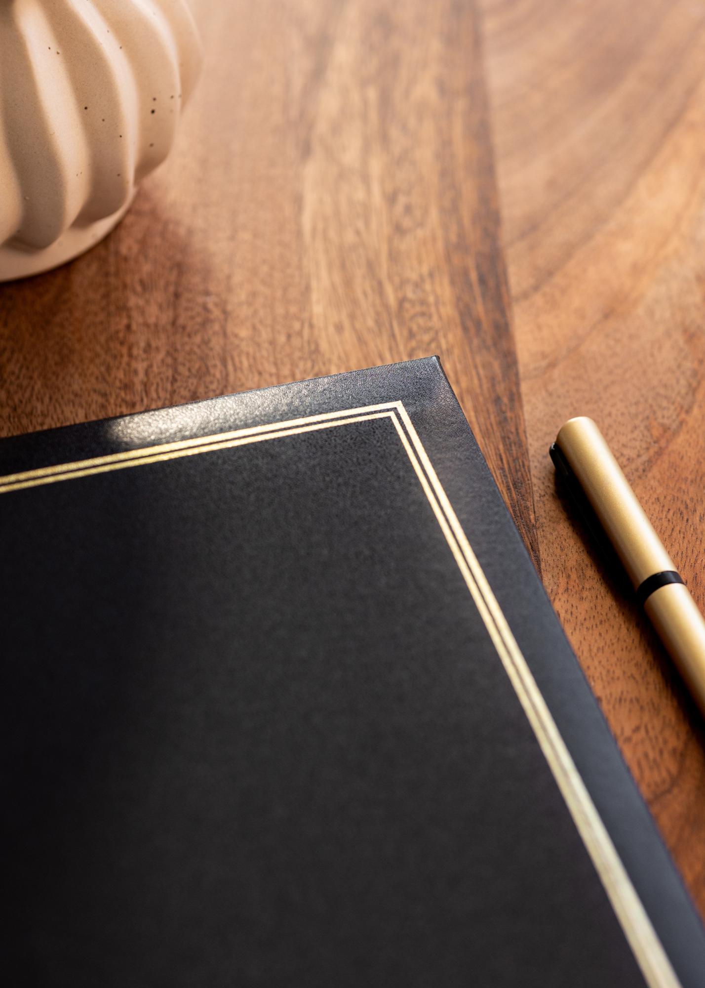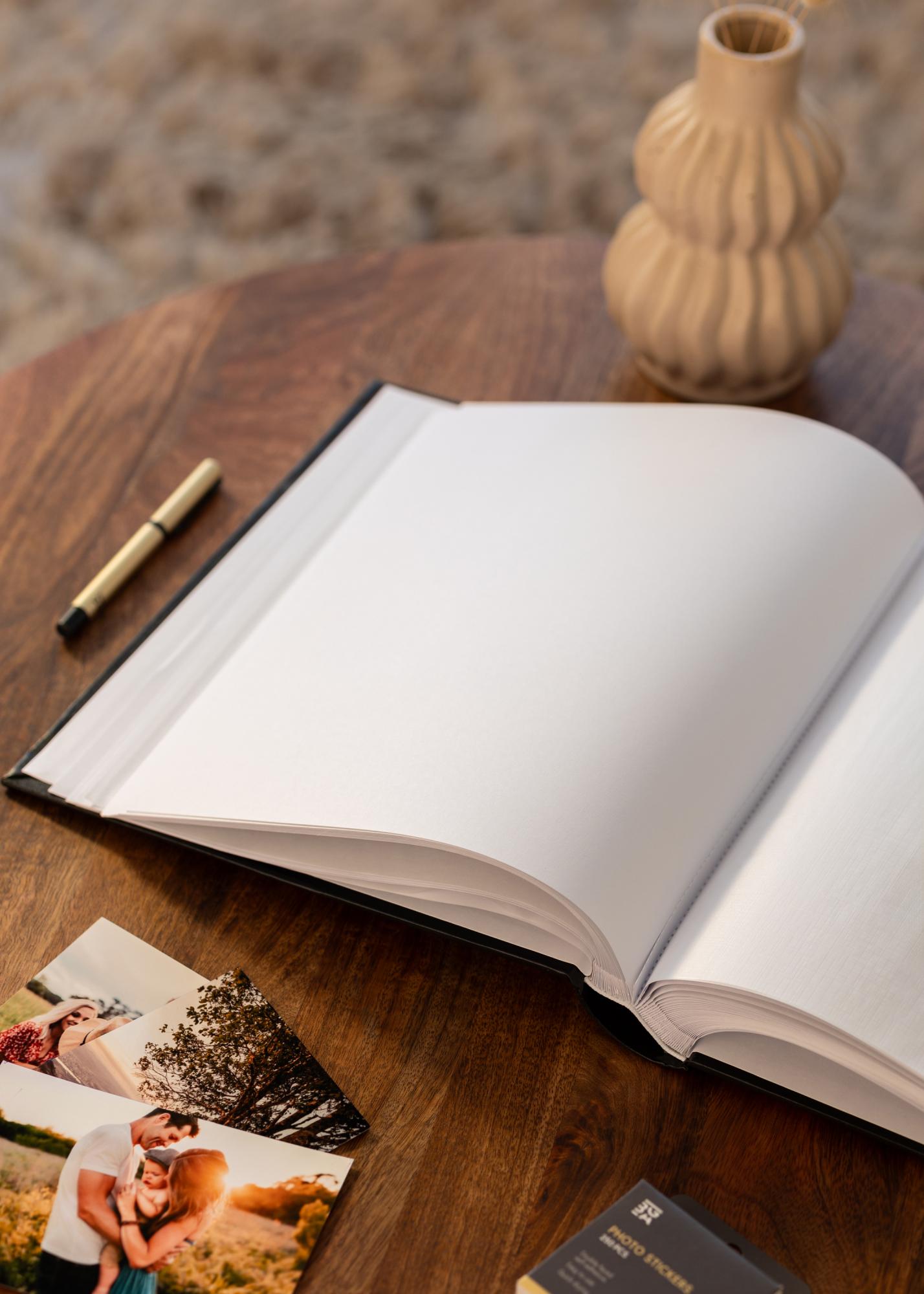 Álbum Classico Negro es la elección perfecta para aquellos que desean crear un álbum de fotos personal y elegante. Con sus elegantes cubiertas en negro y oro, el álbum ofrece una sensación atemporal que se adapta a todas las ocasiones. El álbum mide 32x34 cm y contiene 100 páginas blancas, lo que equivale a 50 hojas, donde puedes pegar tus fotos favoritas.
