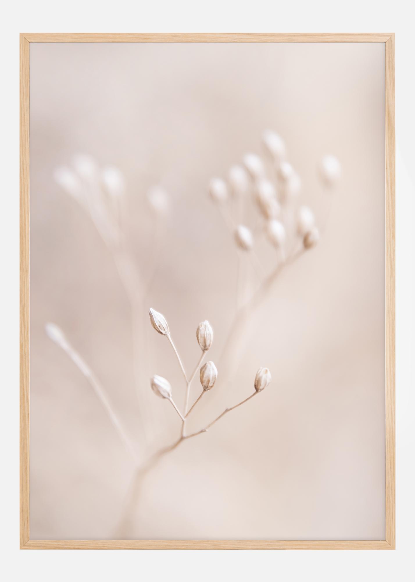 Este póster captura la belleza de lo simple con una fotografía en primer plano de paja y brotes en un tono suave beige. El fondo desenfocado otorga una calidad de ensueño y resalta la delicada estructura de la paja y los finos detalles de los brotes. Es un homenaje a la silenciosa elegancia de la naturaleza y brinda una sensación de quietud y calidez.