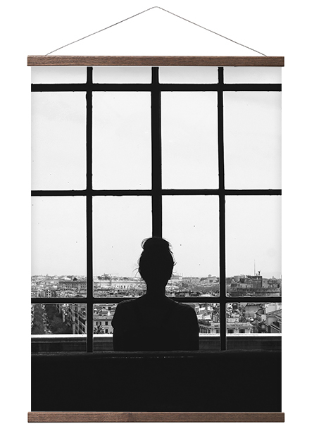 Colgador de póster único con dos funciones en el mismo producto. Se utiliza como un colgador de póster clásico con cuerda en la pared o se puede quitar la cuerda y colocar la barra directamente en la pared.
