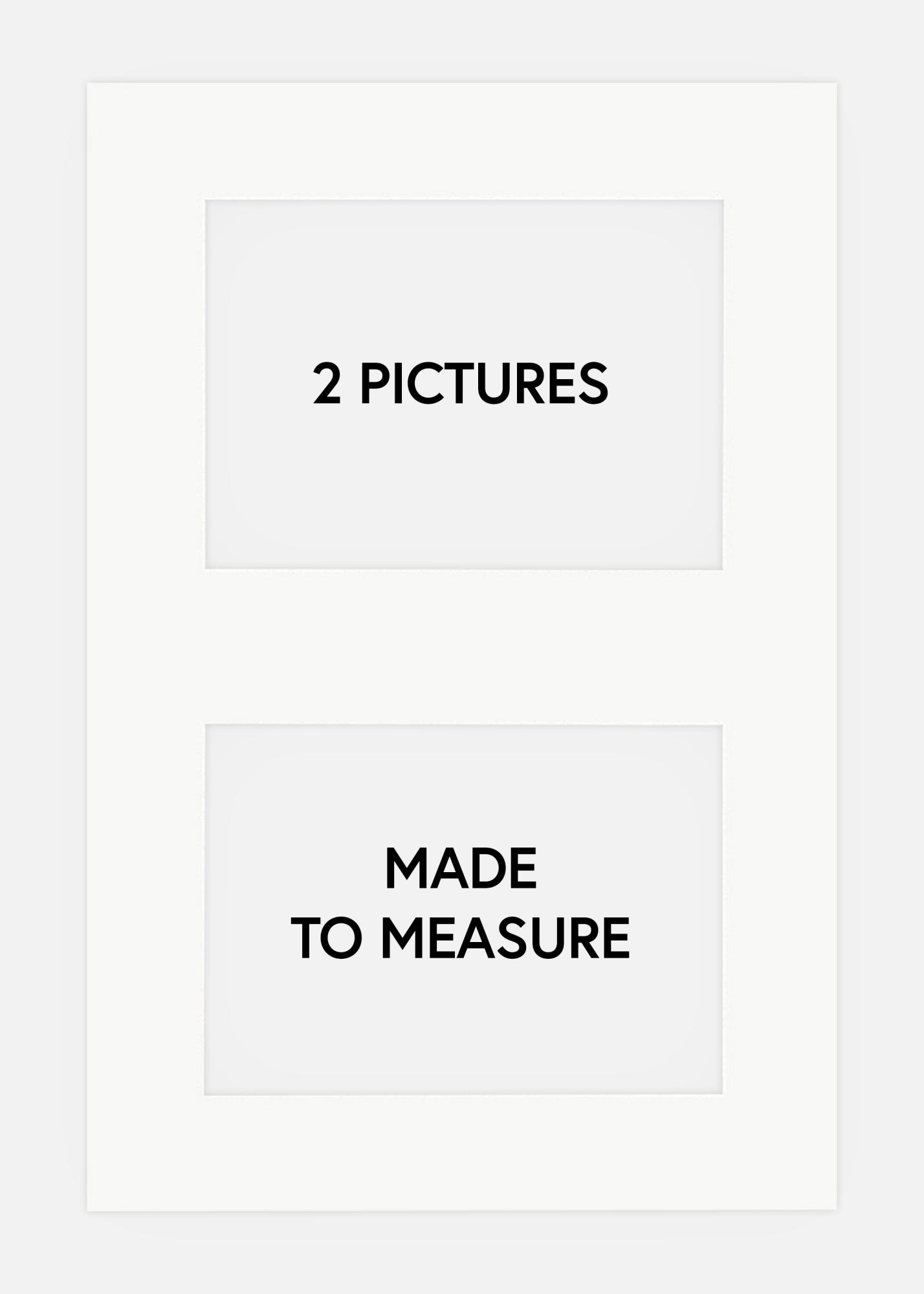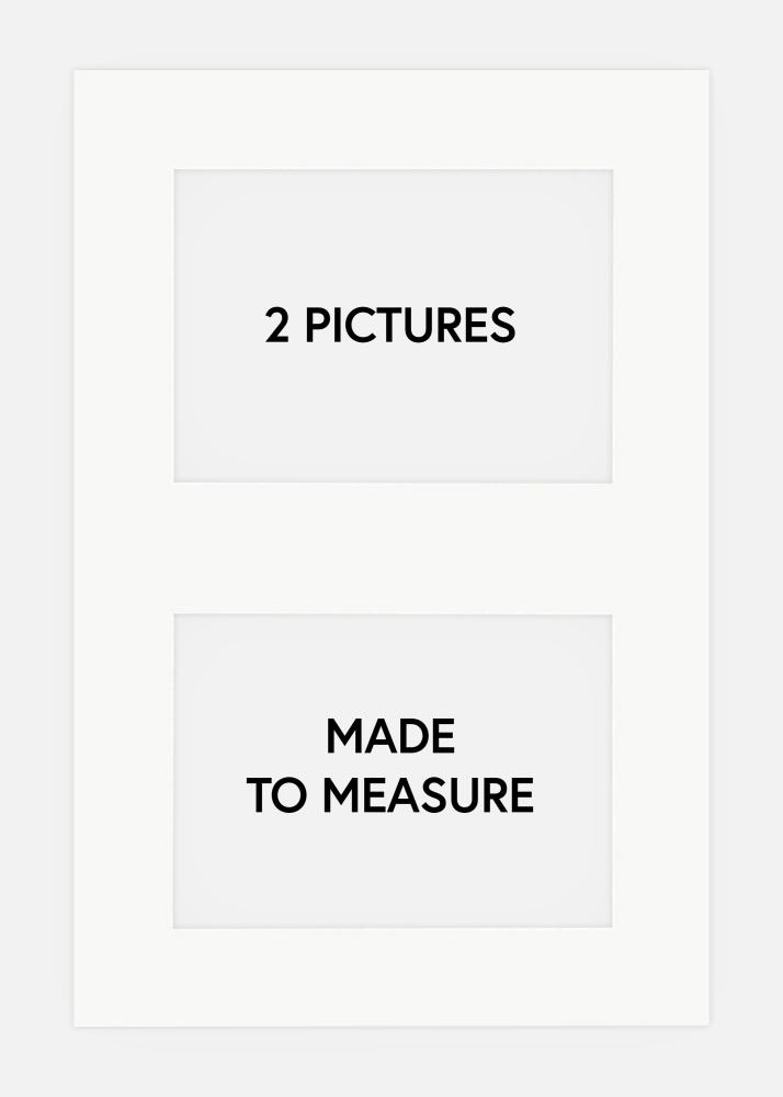 Aquí puedes pedir cómodamente paspartús de collage con espacio para 2 imágenes. Para hacer el pedido, debes indicar las dimensiones exteriores del paspartú (que deben ser las mismas que las del marco que vas a utilizar), luego debes indicar las dimensiones interiores deseasdas, que siempre deben ser 1 cm más pequeñas que las imágenes que vas a utilizar. Solo puedes hacer el pedido aquí si tienes dos imágenes del mismo tamaño, si deseas paspartús de collage más avanzados, debes contactar a nuestro servicio al cliente para hacer tu pedido.