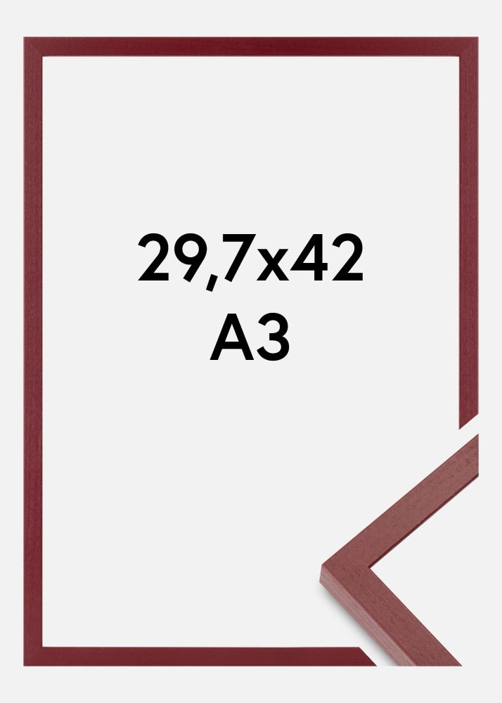 Dale a tus paredes un toque de color con este llamativo marco de fotos rojo en tamaño 29,7x42 cm (A3)! La delgada y elegante moldura de 13,5 mm enmarca tu obra de arte o foto sin dominarla. Con su profundidad de 22,5 mm, el marco de cuadro crea un bonito efecto tridimensional en tu pared.