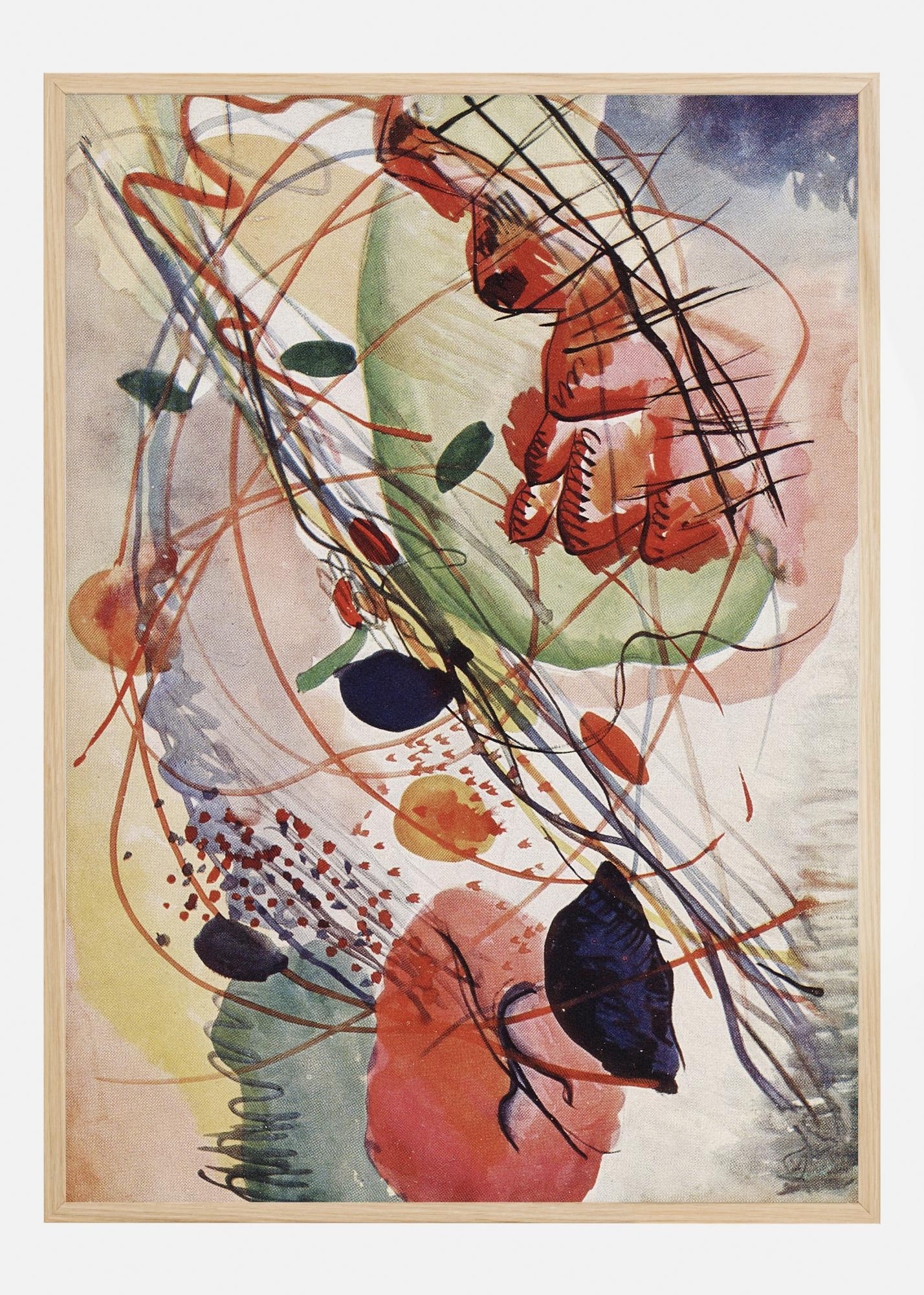 Un póster alegre lleno de colores y formas abstractas que crean una imagen dramática, casi caótica. Grandes salpicaduras de color, puntos coloridos y líneas rayadas hacen de esto una dosis dramática cuando la mirada recorre la imagen para descubrir qué está sucediendo. Obtienes una sensación de dramatismo cuando cuelgas esta obra en el recibidor.