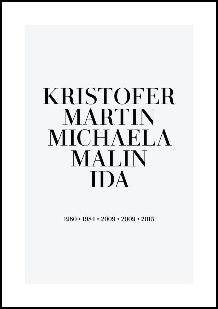 Un póster personalizado es un regalo único y divertido, tanto para dar como para recibir, y se convierte en un recuerdo precioso que se cuidará durante mucho tiempo. Simplemente rellenas los campos anteriores con la información que deseas incluir, ¡y nosotros creamos tu póster personalizado!