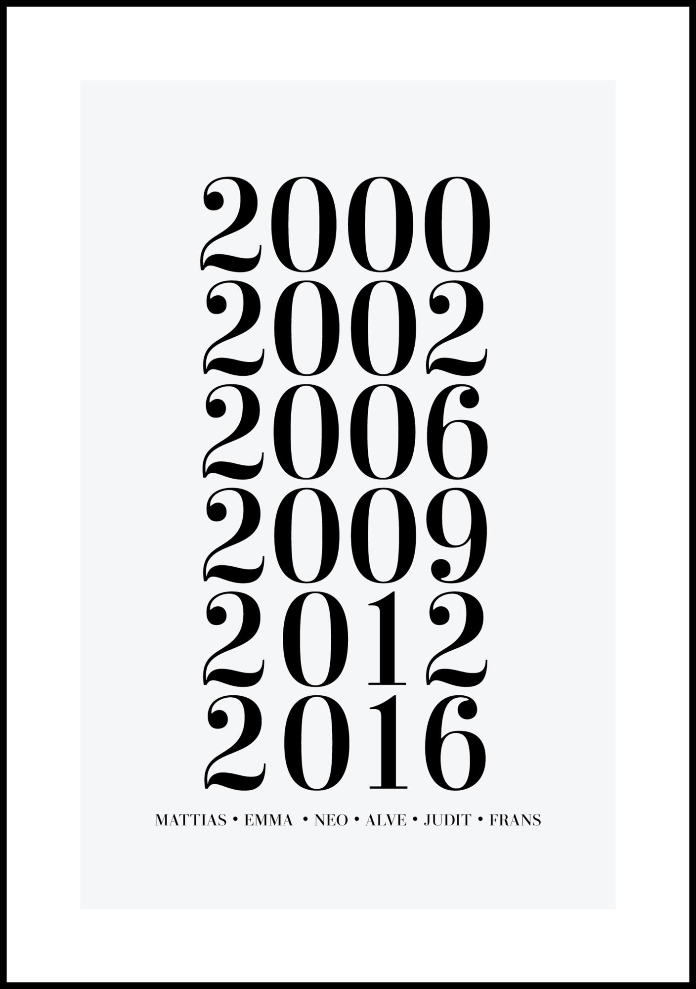 Un póster personalizado es un regalo único y divertido, tanto para dar como para recibir, y se convierte en un recuerdo precioso que se cuidará durante mucho tiempo. Simplemente rellenas los campos anteriores con la información que deseas incluir, ¡y nosotros creamos tu póster personalizado!