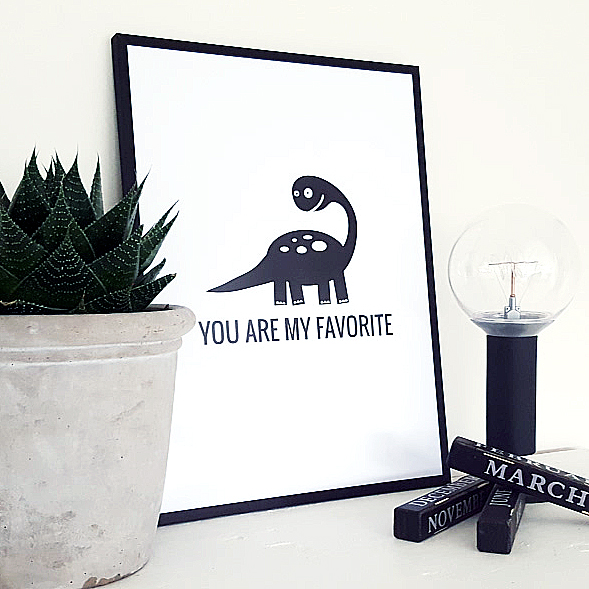 Linda impresión con un dulce dinosaurio. Decora la habitación de los niños con una hoja gráfica que hace que el niño se sienta amado, especialmente diseñada para todos los fanáticos de los dinosaurios. La elegante y sencilla fuente negra hace que el póster se adapte independientemente de el color y el estilo en el que esté decorada la habitación. Combina bien con Elefant Dream, Kanin Happy, Hund Little, Superhero o Pingvin Cool.