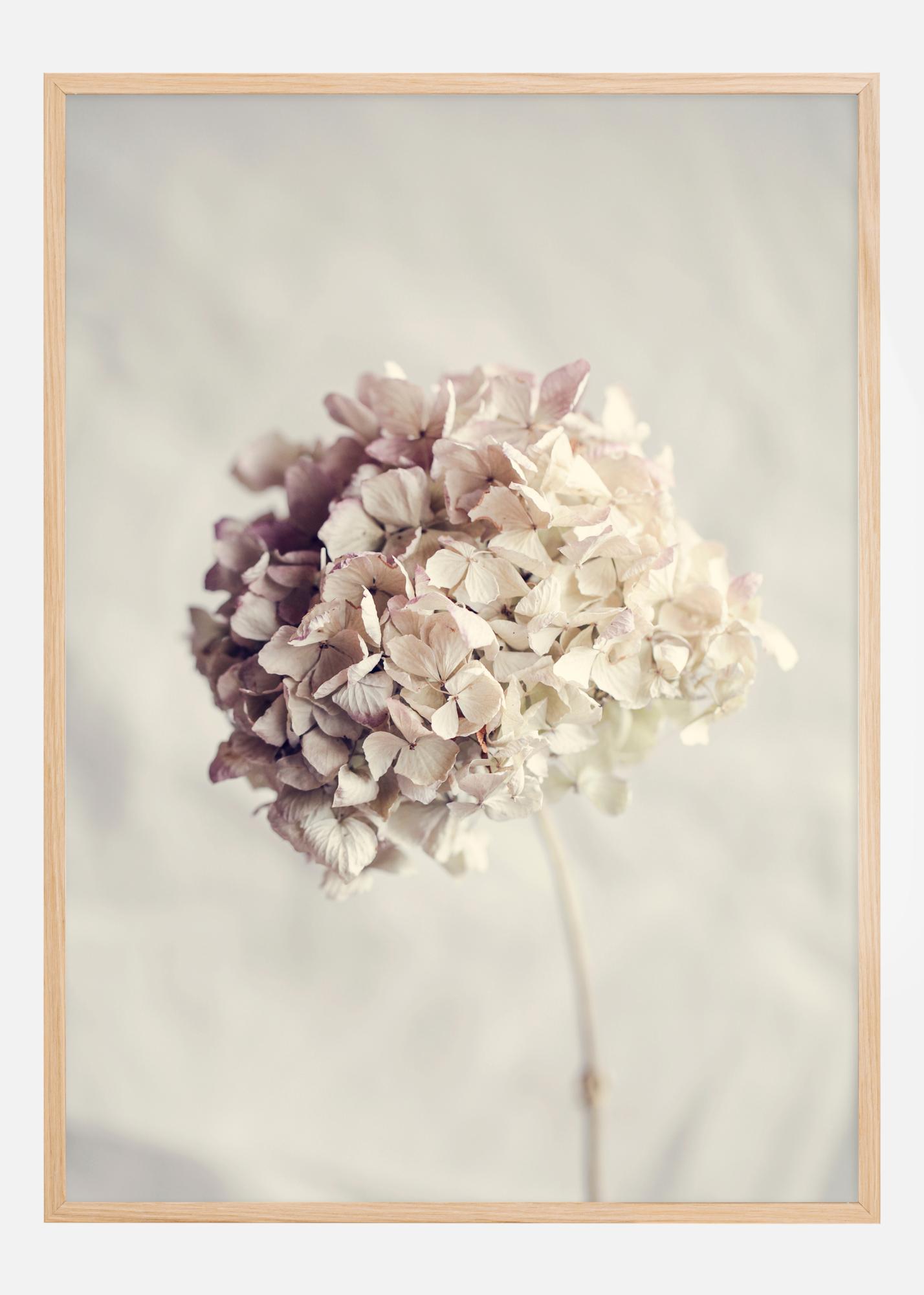 Este póster presenta una imagen frágil y poética de una hortensia seca. Sus tonos sutiles y la textura delicada de los pétalos crean una sensación de nostalgia y belleza atemporal. Esta impresión es un homenaje a la fugacidad de la naturaleza y la belleza de los momentos transitorios que la vida ofrece.