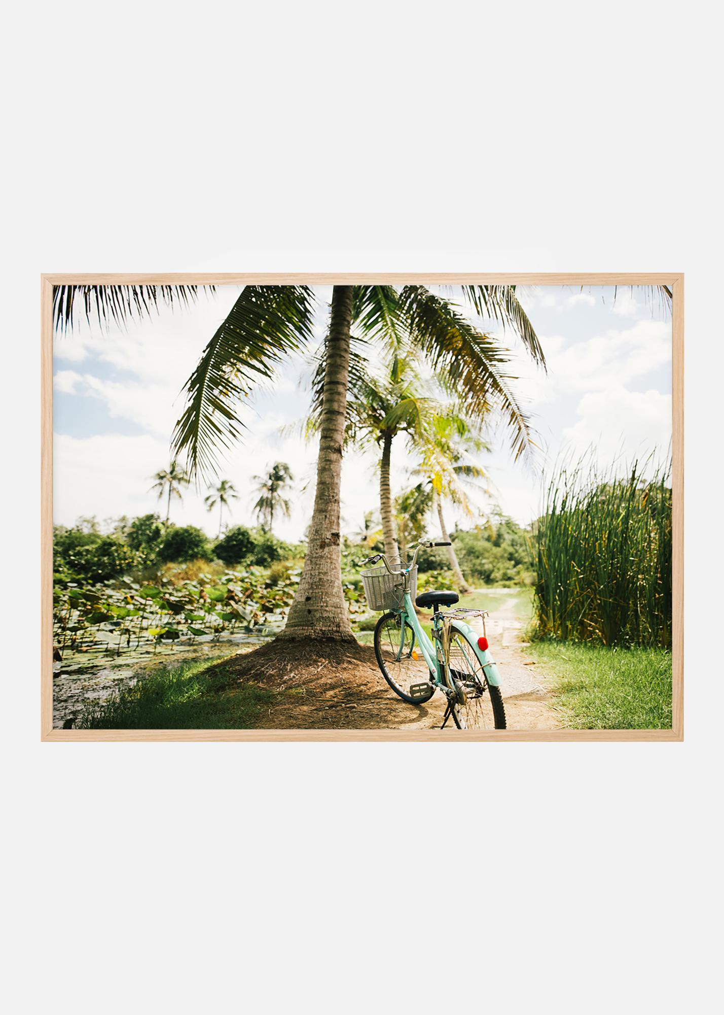 Póster que evoca el Caribe y días perezosos al sol con arena entre los dedos de los soportes. Imagina poder mirar esta imagen en un día de invierno lleno de nieve y soñar despierto. Impresión en tonos tropicales verde-azulados con palmeras para decorar paredes en todo tipo de habitaciones que necesiten un poco de sol. Combínalo con otros cuadros del mismo tema para crear una galería de pared.