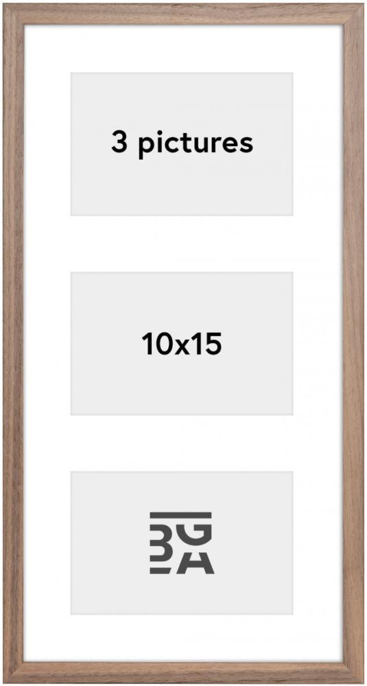 El diseño minimalista realza el motivo, para que tus fotos favoritas sean el centro de atención. El marco está disponible en varias versiones, siendo esta una variante en nogal claro con espacio para 3 fotos de tamaño 10x15 cm.