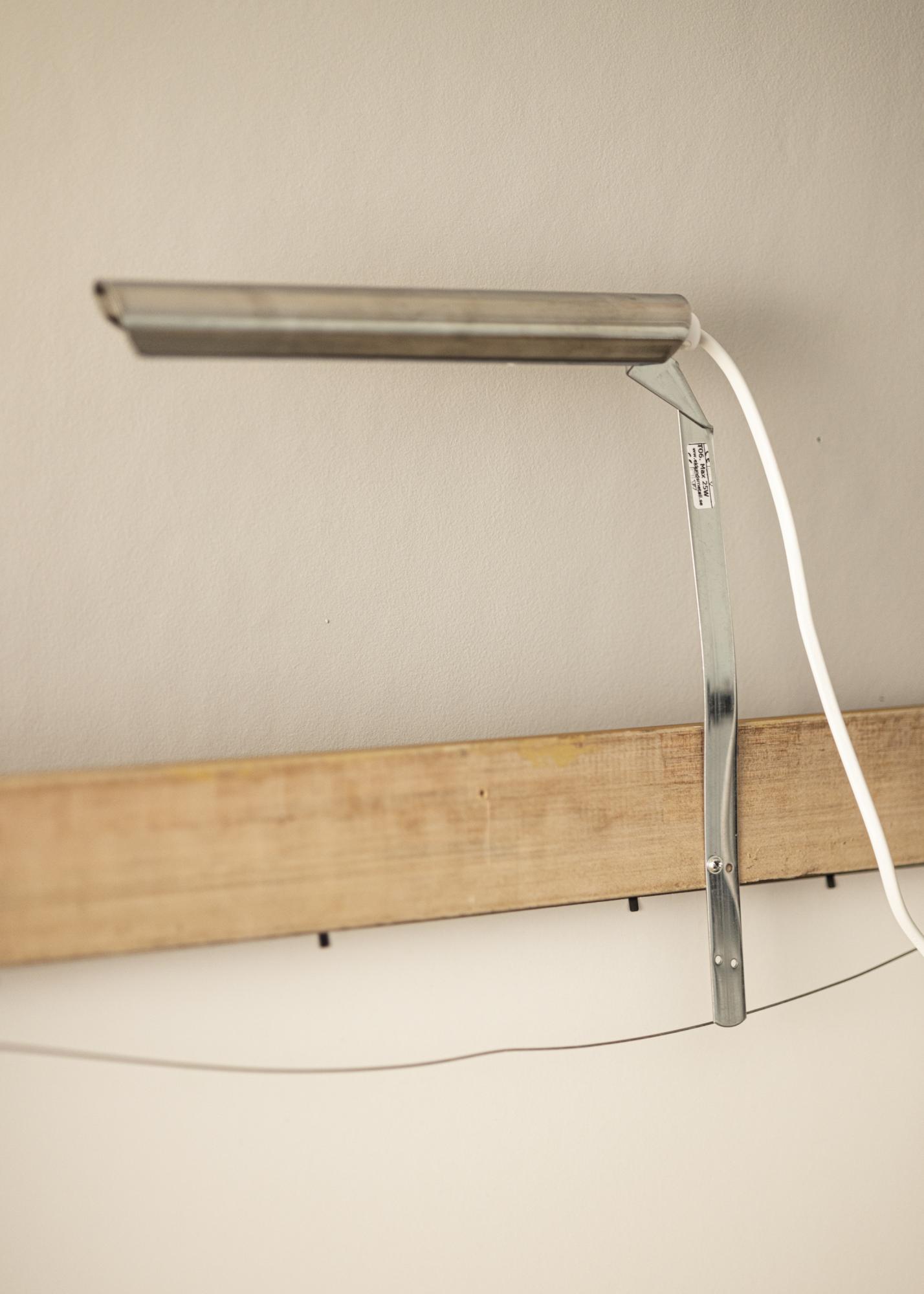 Normalmente, colocas la iluminación para cuadros en la parte trasera del marco, la desventaja de esto es que se requiere un marco de madera (algunos marcos compuestos funcionan) que tenga un perfil ancho para poder atornillar en el marco. Con nuestro soporte de pared, no tienes que preocuparte por eso, sencillamente monta tu iluminación para cuadros directamente en la pared detrás del cuadro.