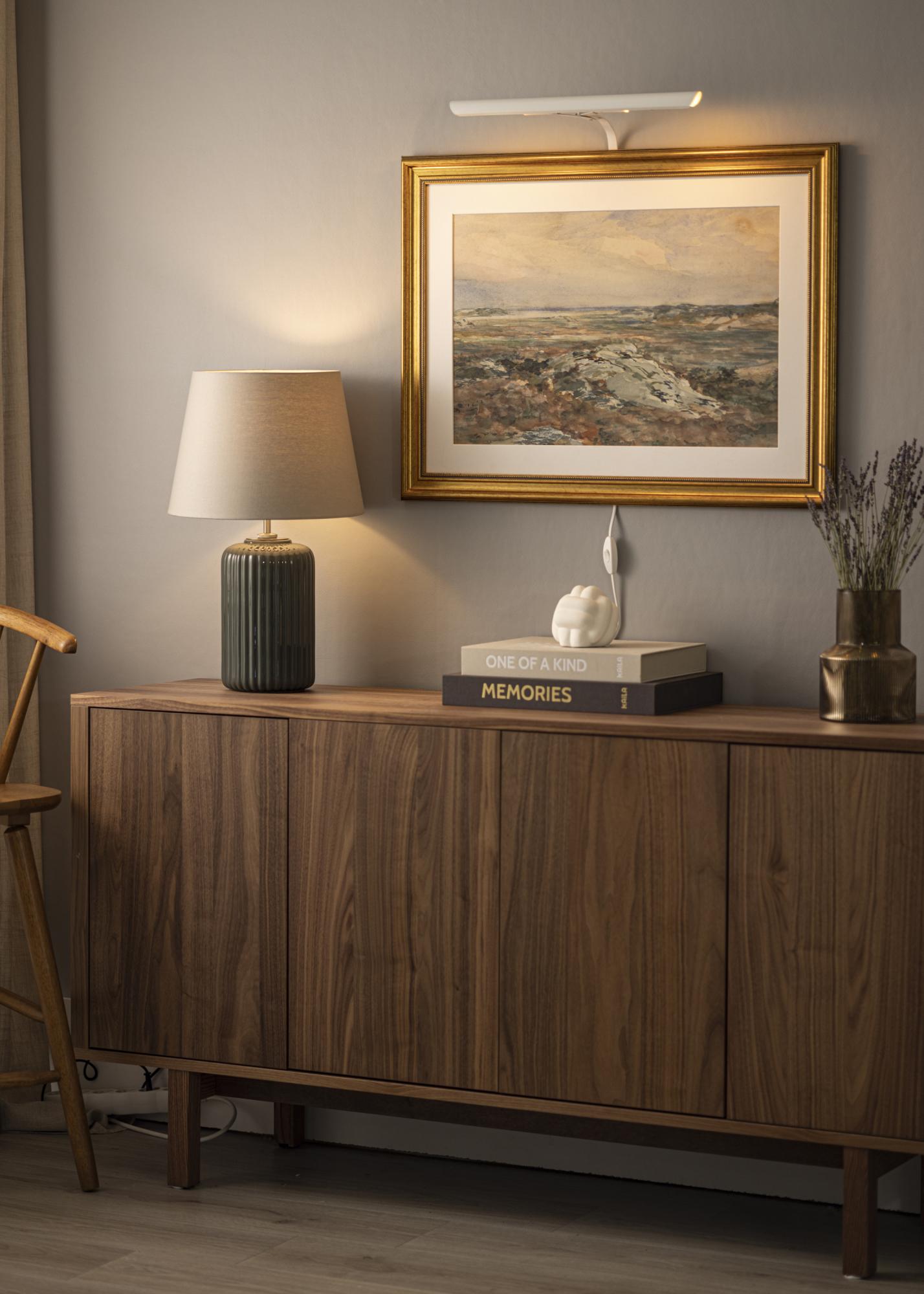 Uno 2 es una elegante iluminación para cuadros diseñada y fabricada en Suecia. Una opción perfecta para tus imágenes que te gustan especialmente y en las que quieres tener un enfoque garantizado. El tono de color de la iluminación para cuadros en latón antiguo tiene pátinas que le dan un hermoso aspecto "desgastado". ¡Un encantador detalle de decoración que realza tus imágenes!