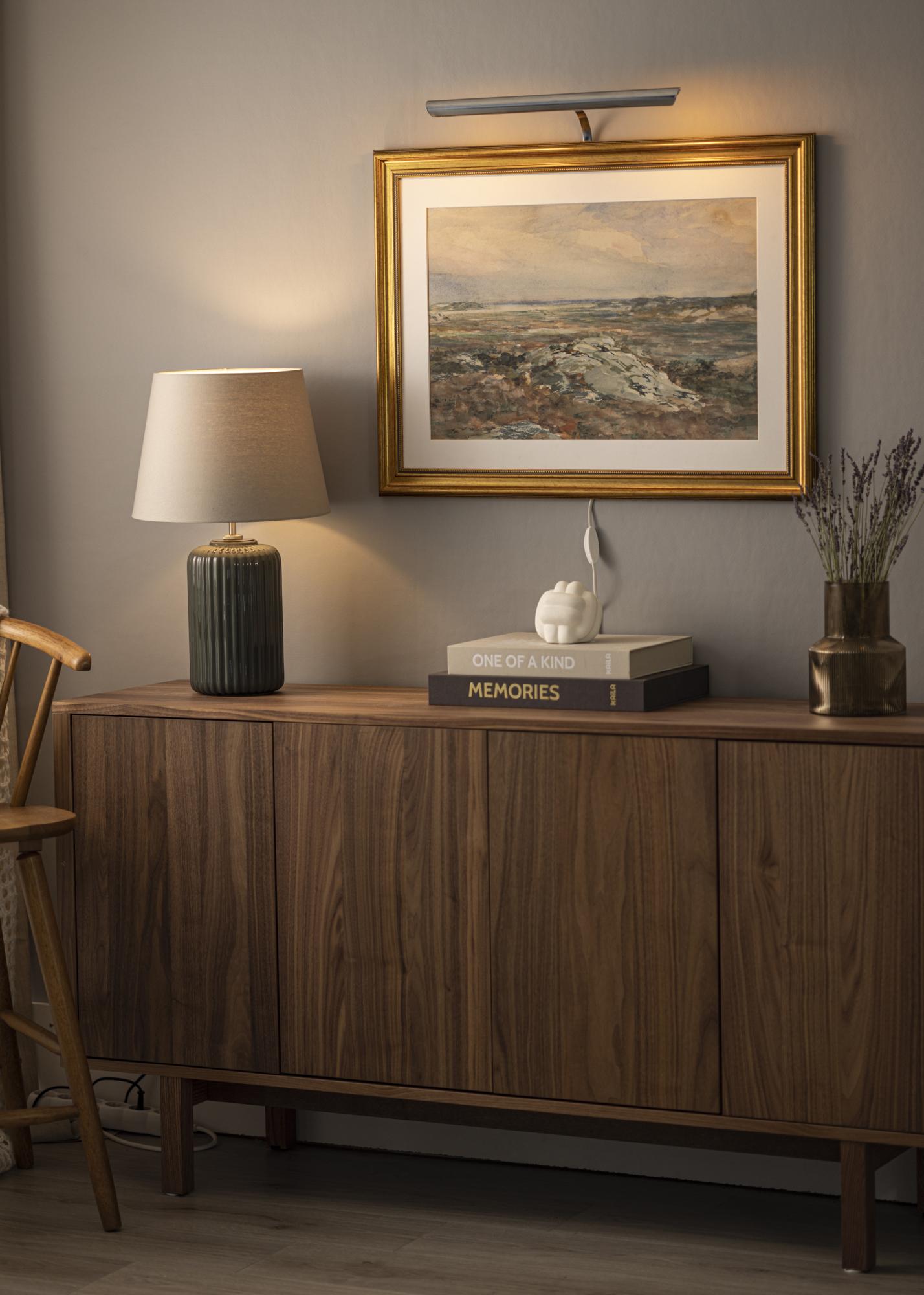 Uno 2 es una elegante iluminación para cuadros diseñada y fabricada en Suecia. Una opción perfecta para tus imágenes que te gustan especialmente y en las que quieres tener un enfoque garantizado. El tono de color de la iluminación para cuadros en latón antiguo tiene pátinas que le dan un hermoso aspecto "desgastado". ¡Un encantador detalle de decoración que realza tus imágenes!