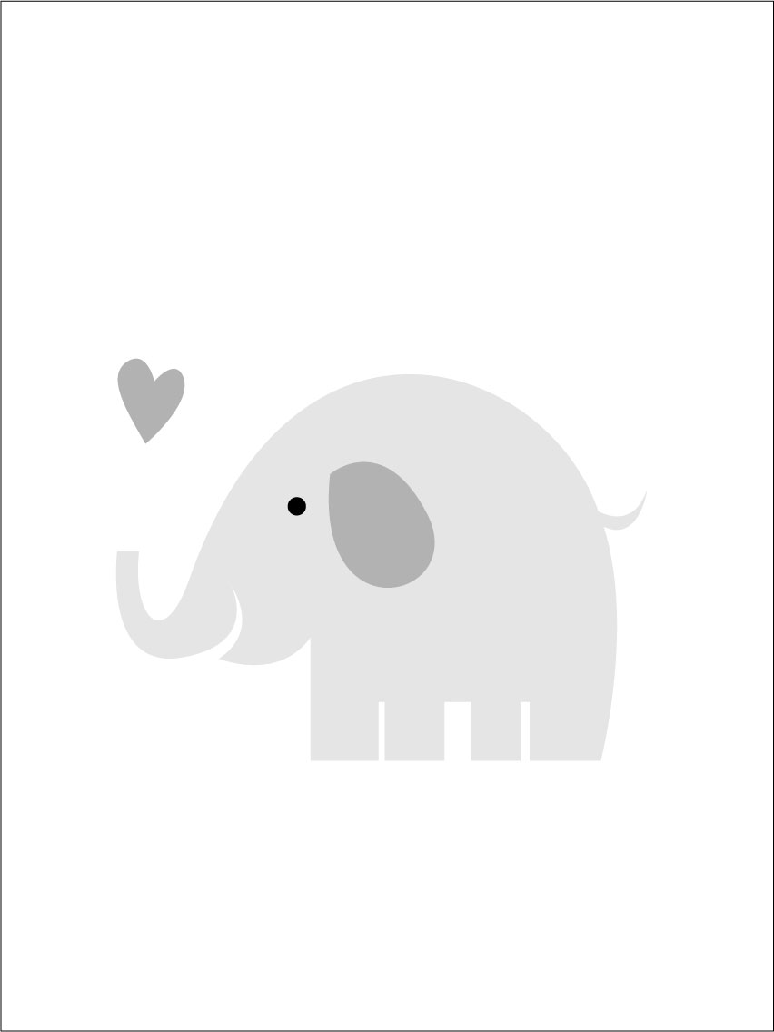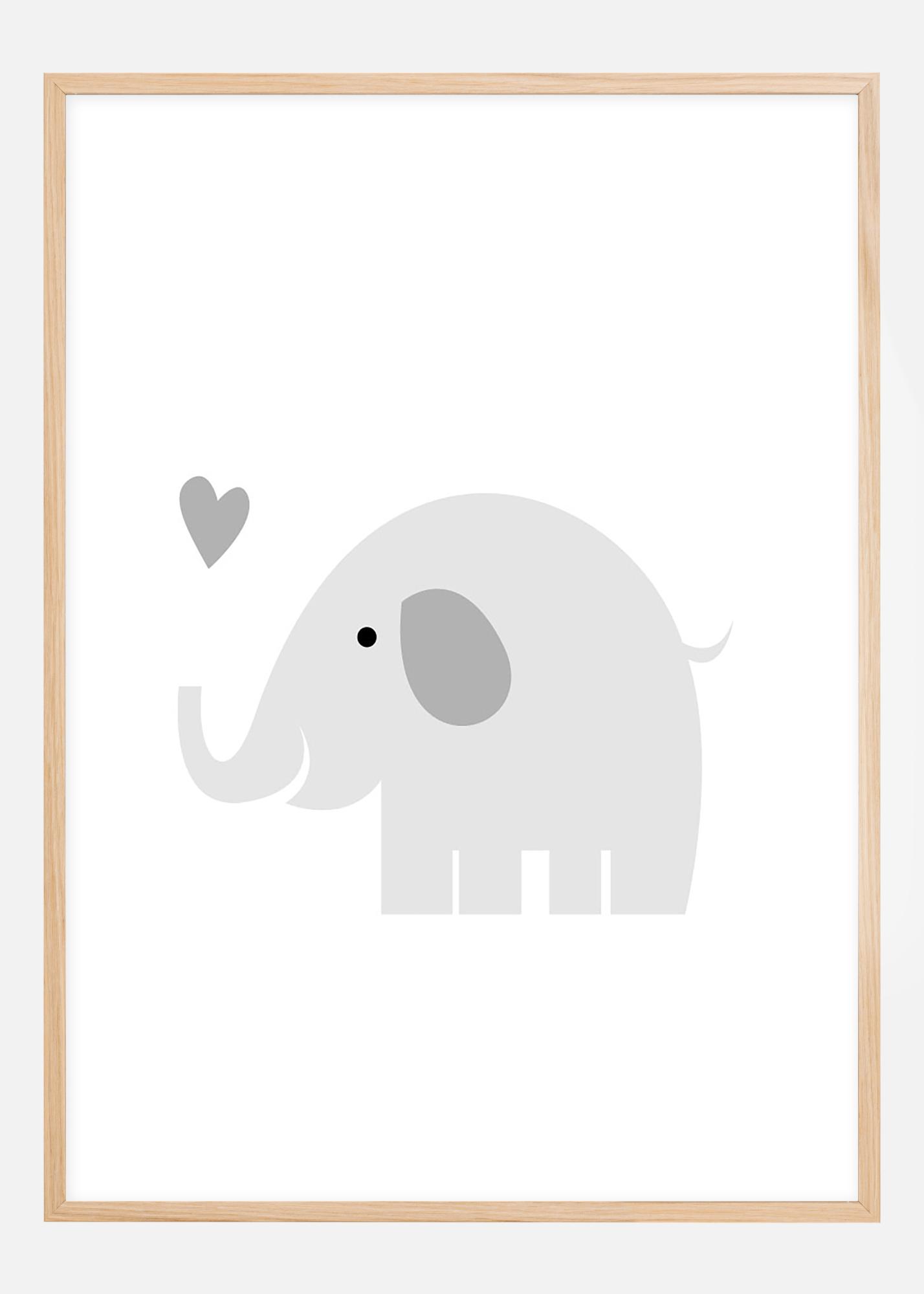 Póster con una impresión gráfica de un elefante lindo y un corazón en tono gris oscuro sobre fondo blanco. Algo para aquellos a quienes les gustan todos los animales de la sabana, pero que quizás se adapta mejor a las habitaciones de los niños más pequeños. El póster se puede combinar con otros pósters de animales o elefantes en la misma paleta de colores, para crear una sensación de cuento encantador en la habitación de los niños.