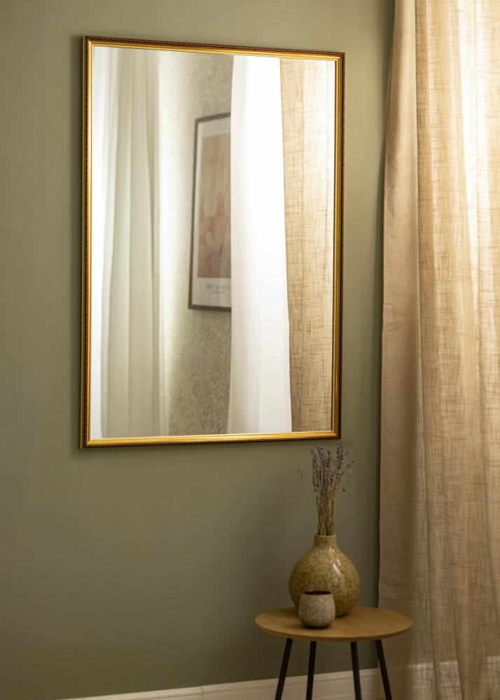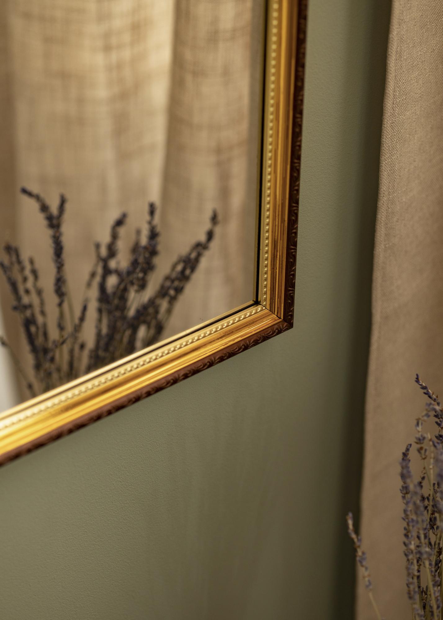Abisko Dorado es un espejo de pared para aquellos que buscan un espejo decorativo con un elegante toque retro. El espejo tiene un marco de 25 mm de ancho con un tono marrón y un exclusivo color dorado cerca del vidrio del espejo. El marco tiene un hermoso perfil ornamentado, lo que hace que el espejo de pared sea una decoración de pared muy elegante que se adapta bien tanto en el recibidor como en el dormitorio.