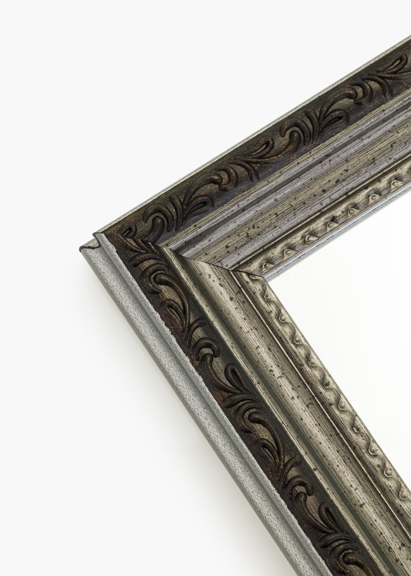 Este es un espejo de pared en un elegante tono plateado acentuado por un borde negro. El elegante tono de color del espejo combina perfectamente con el perfil ornamentado, cuyo diseño ayuda a crear un conjunto muy sofisticado. El marco tiene un ancho de 25 mm y está hecho de material compuesto.