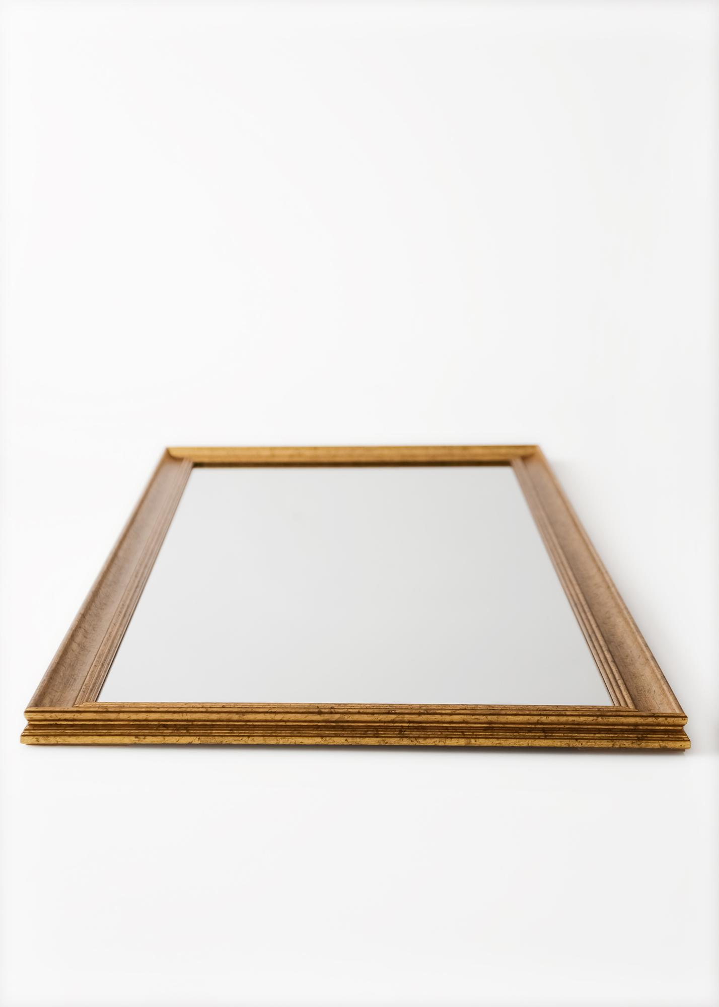 Iniciar el selector de marcos »Alice Dorado es un espejo cuyo marco tiene un diseño clásico y sobrio con líneas rectas que se construyen para enfocar la atención en el motivo.