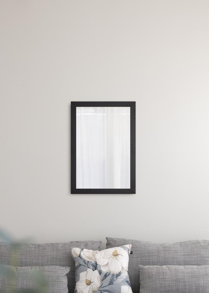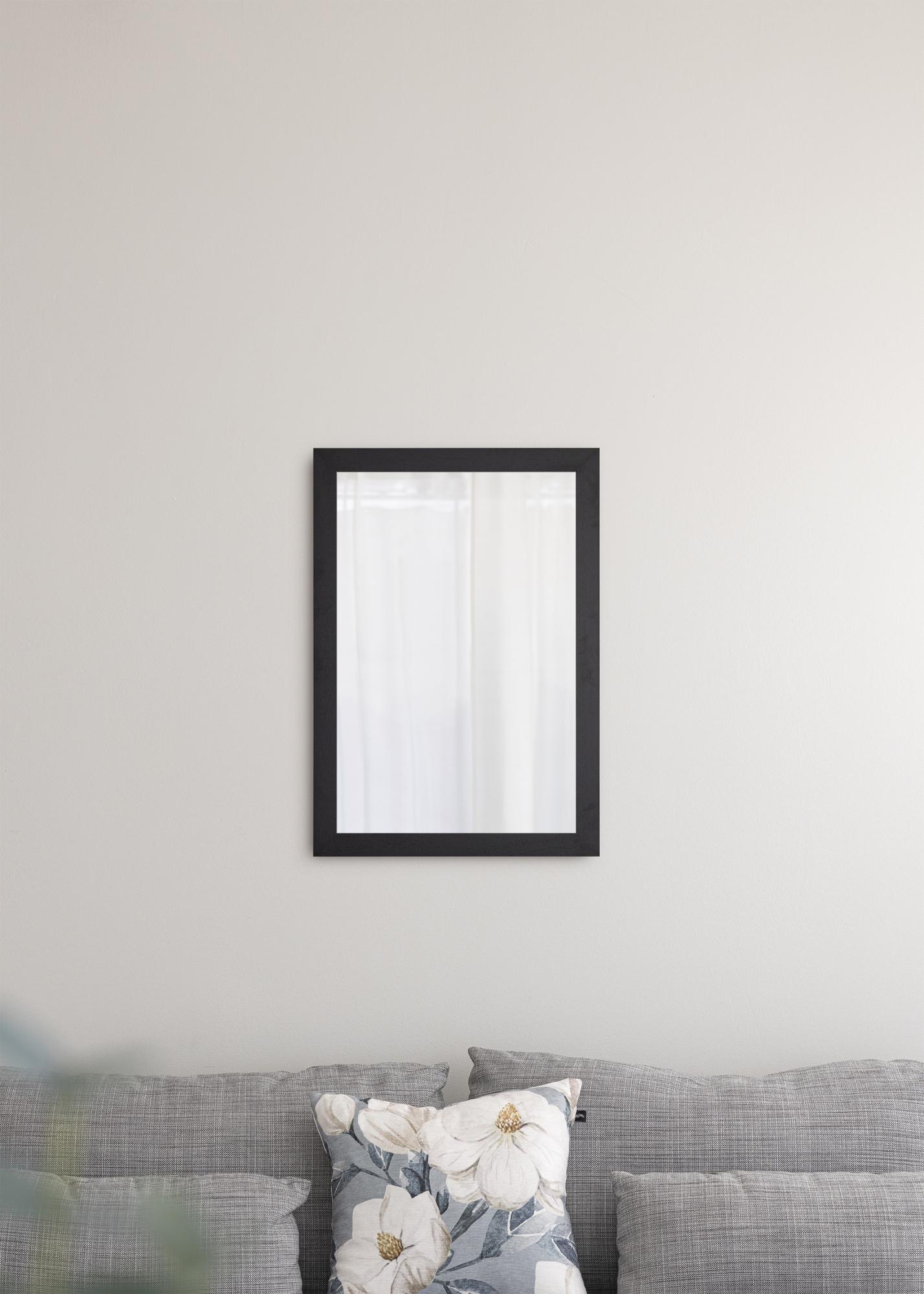Este espejo de pared es un elegante y minimalista detalle decorativo que se adapta perfectamente tanto a hogares modernos como tradicionalmente decorados. El espejo tiene un marco de madera pintado de negro de 39 mm de ancho, lo que le da una impresión moderna. Colocando un espejo en una habitación, puedes hacer que parezca más grande, al mismo tiempo que se ve elegante en la pared. Este espejo forma parte de una serie de espejos de pared de diferentes tamaños, siendo este de 47x67 cm.