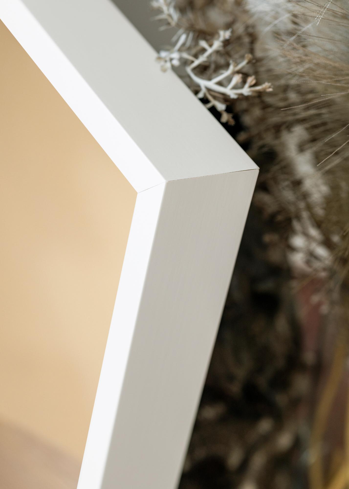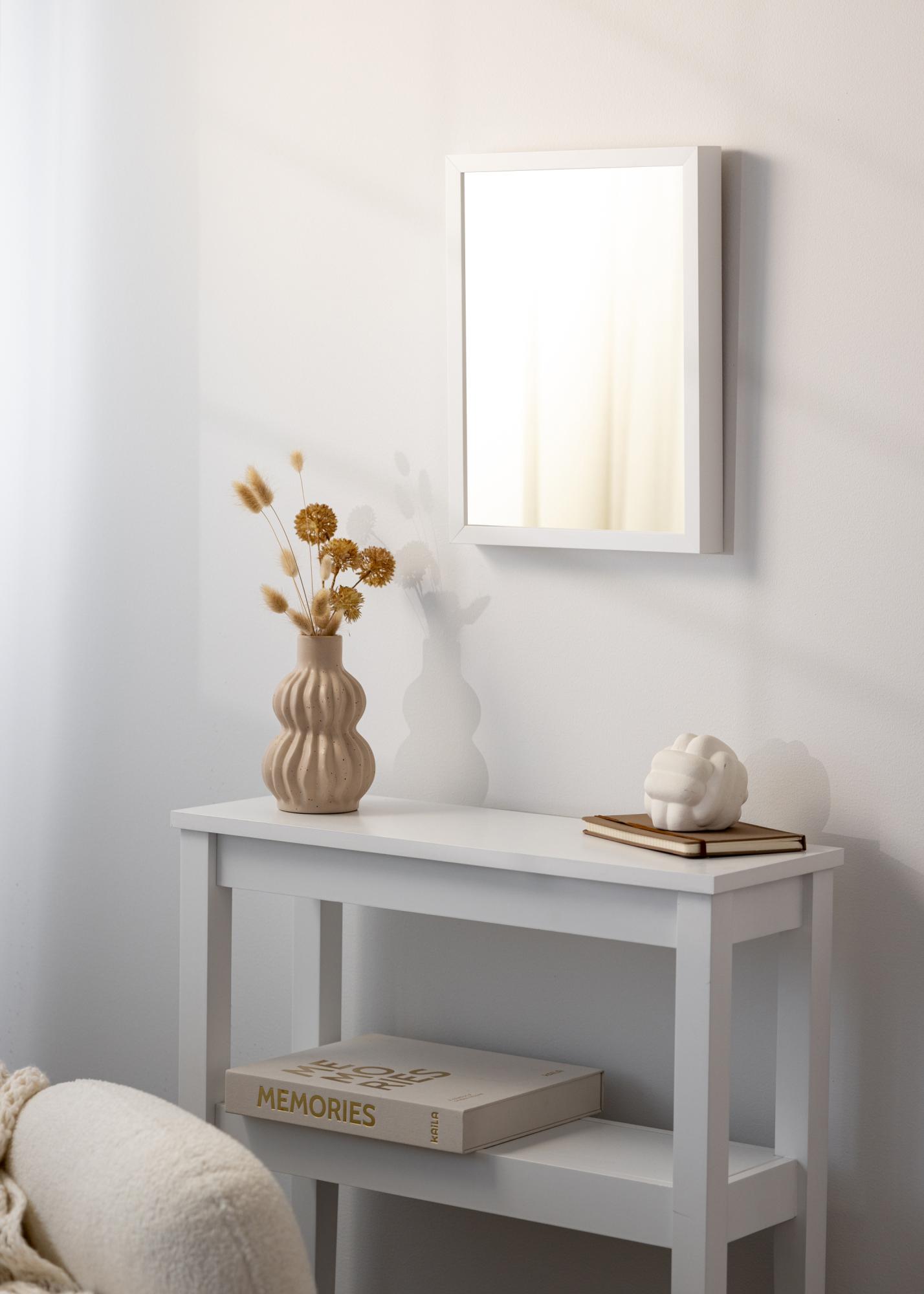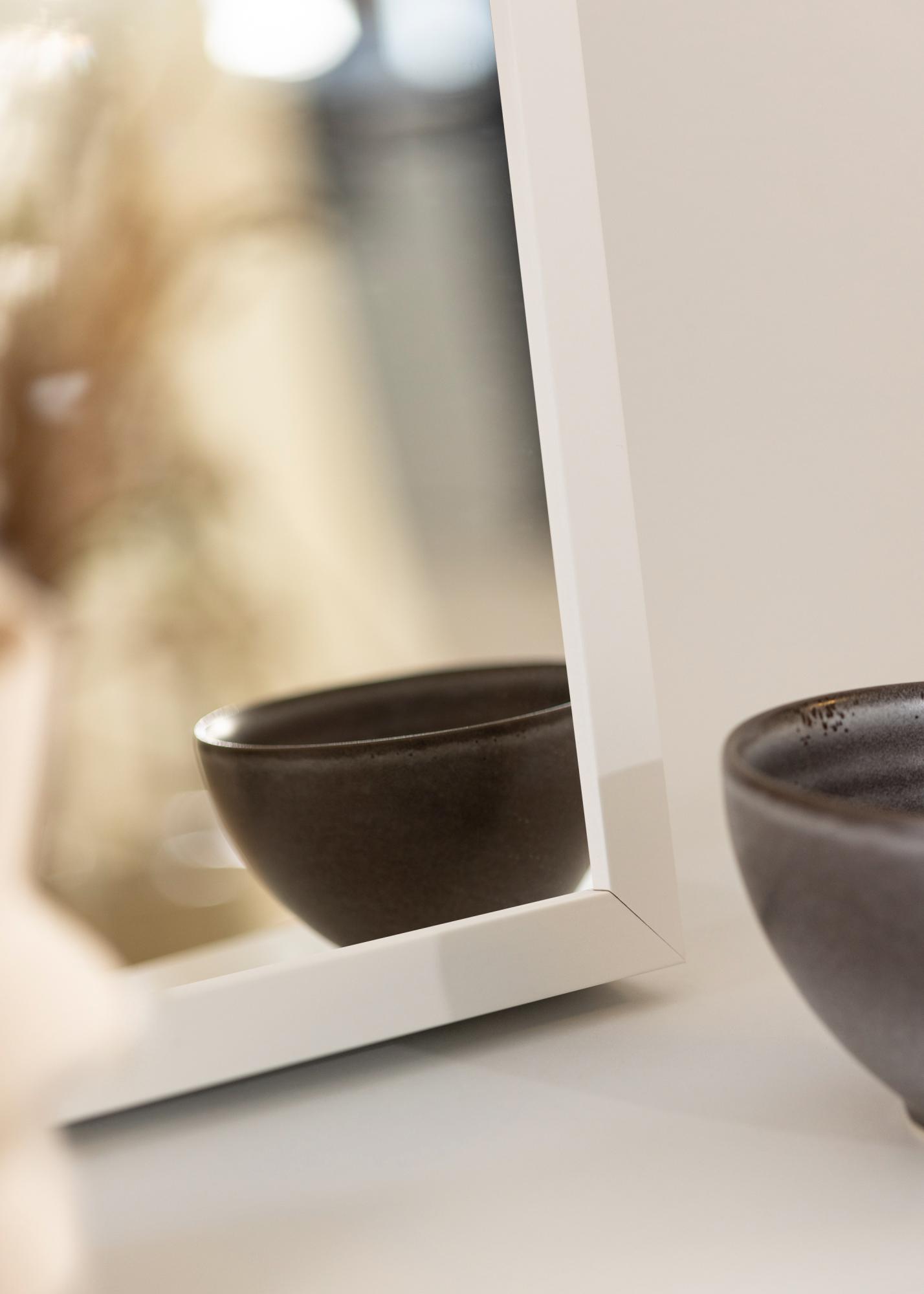El marco del Espejo Balder Blanco tiene 20 mm de ancho y está fabricado en pino, lo que proporciona una construcción estable y duradera. La profundidad del espejo es de 45 mm, lo que hace que se sienta robusto sin ocupar demasiado espacio. El delgado listón del marco contribuye a un diseño minimalista que permite que el vidrio del espejo sea el centro de atención.