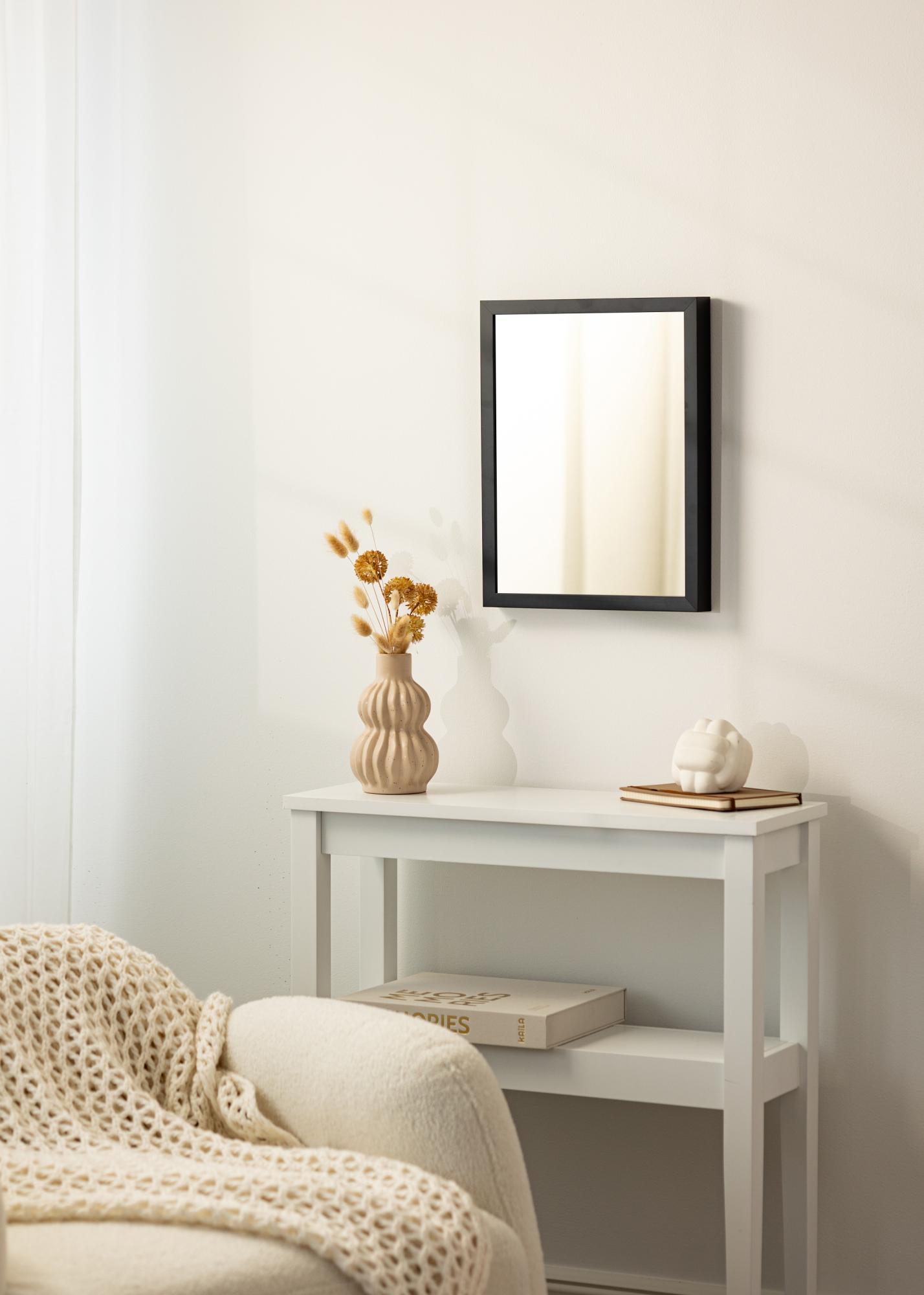 El marco del Espejo Balder Negro es de 20 mm de ancho y le da al espejo un enmarcado discreto pero aún así marcado. La profundidad de 45 mm le da al espejo una sensación estable y robusta, lo que hace que se vea bien y se sienta sólido. El marco está hecho de pino, un material duradero que contribuye a la sensación de calidad del espejo.