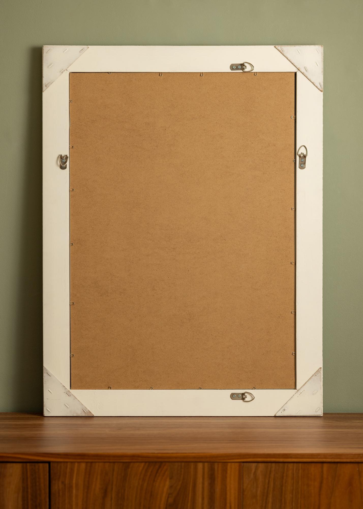 La serie de espejos Bologna Blanco tiene un diseño latino con una decoración abundante en las esquinas y en los puntos medios de los lados del marco. El marco es un poco más estrecho que muchos otros espejos de este estilo. El marco está hecho de madera y la decoración ha sido moldeada en yeso antes de ser aplicada al marco.