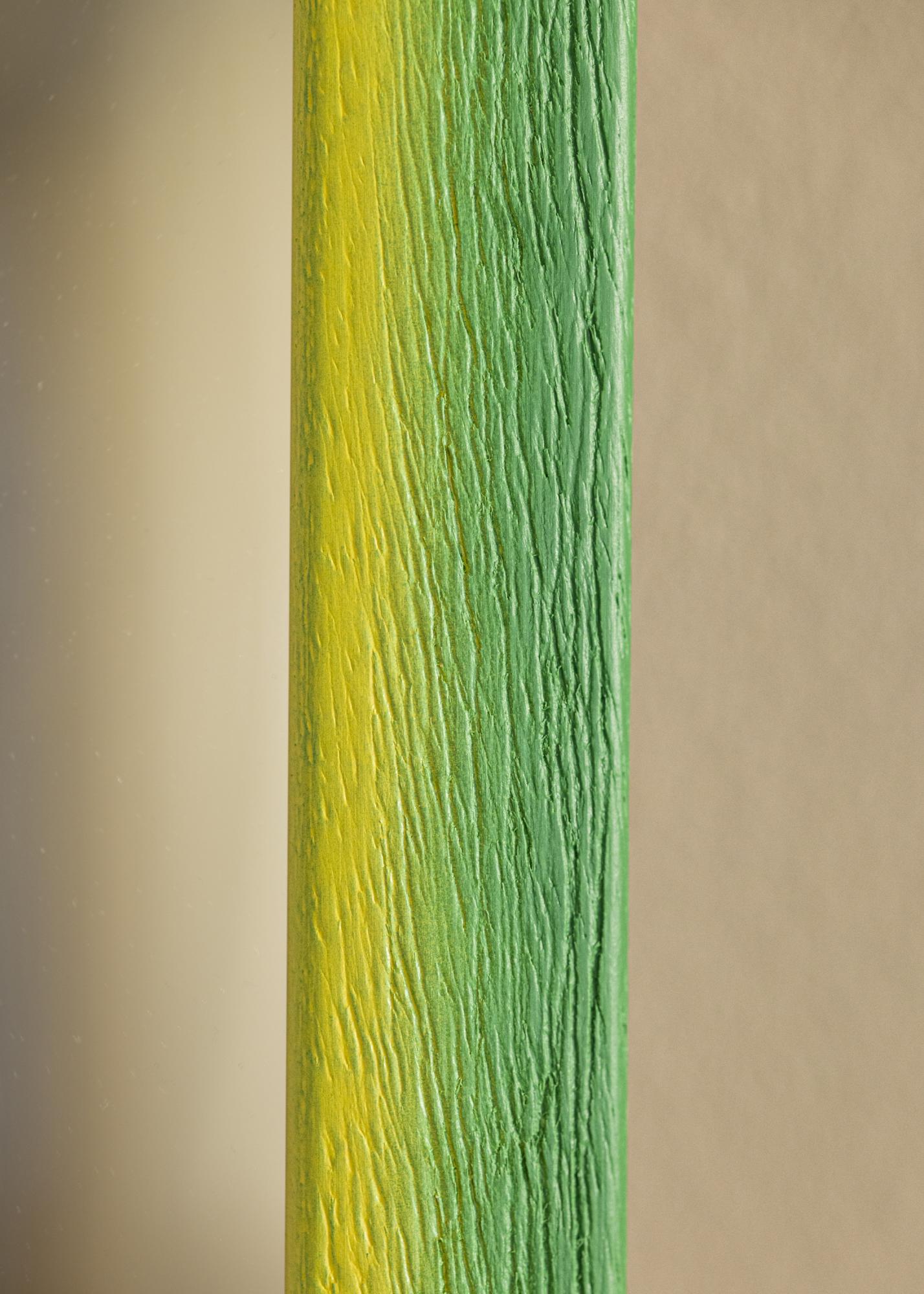 Este espejo se destaca por su vibrante escala de colores, donde una suave transición del amarillo sol al verde exuberante crea una atmósfera armoniosa e invitante. La superficie está marcada por una estructura de madera distintiva con vetas profundas, lo que le da al espejo una sensación táctil que es a la vez moderna y rústica. Los tonos de color se fusionan naturalmente y crean un efecto pintado a mano con una expresión orgánica, lo que hace que cada espejo sea único en su tipo.
