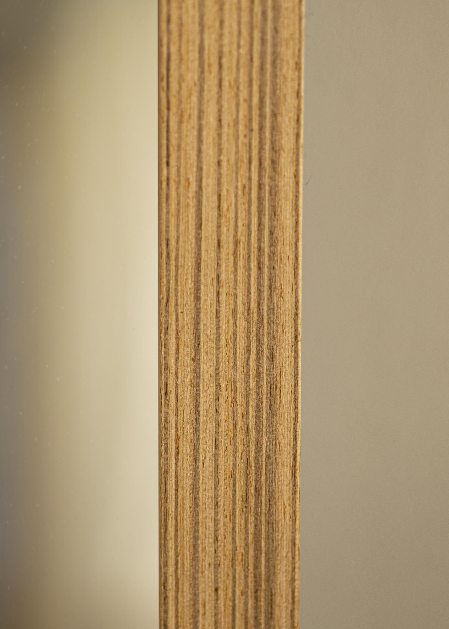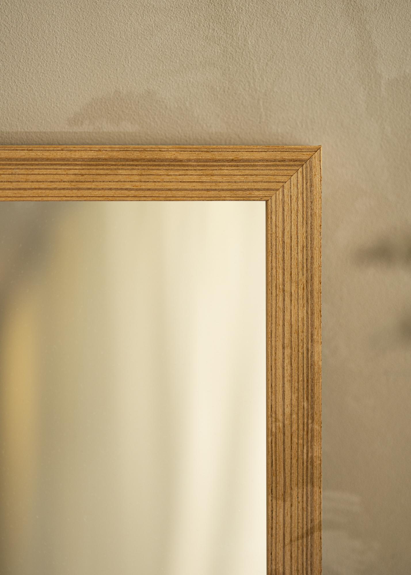 El marco del espejo tiene 28 mm de ancho y una profundidad de 33 mm, lo que proporciona una sensación estable y robusta. Fabricado en pino, este espejo ofrece una durabilidad que se mantiene con el tiempo. La estructura marcada en el marco crea una profundidad vibrante y proporciona una dimensión táctil que hace que el espejo se sienta vivo y dinámico.